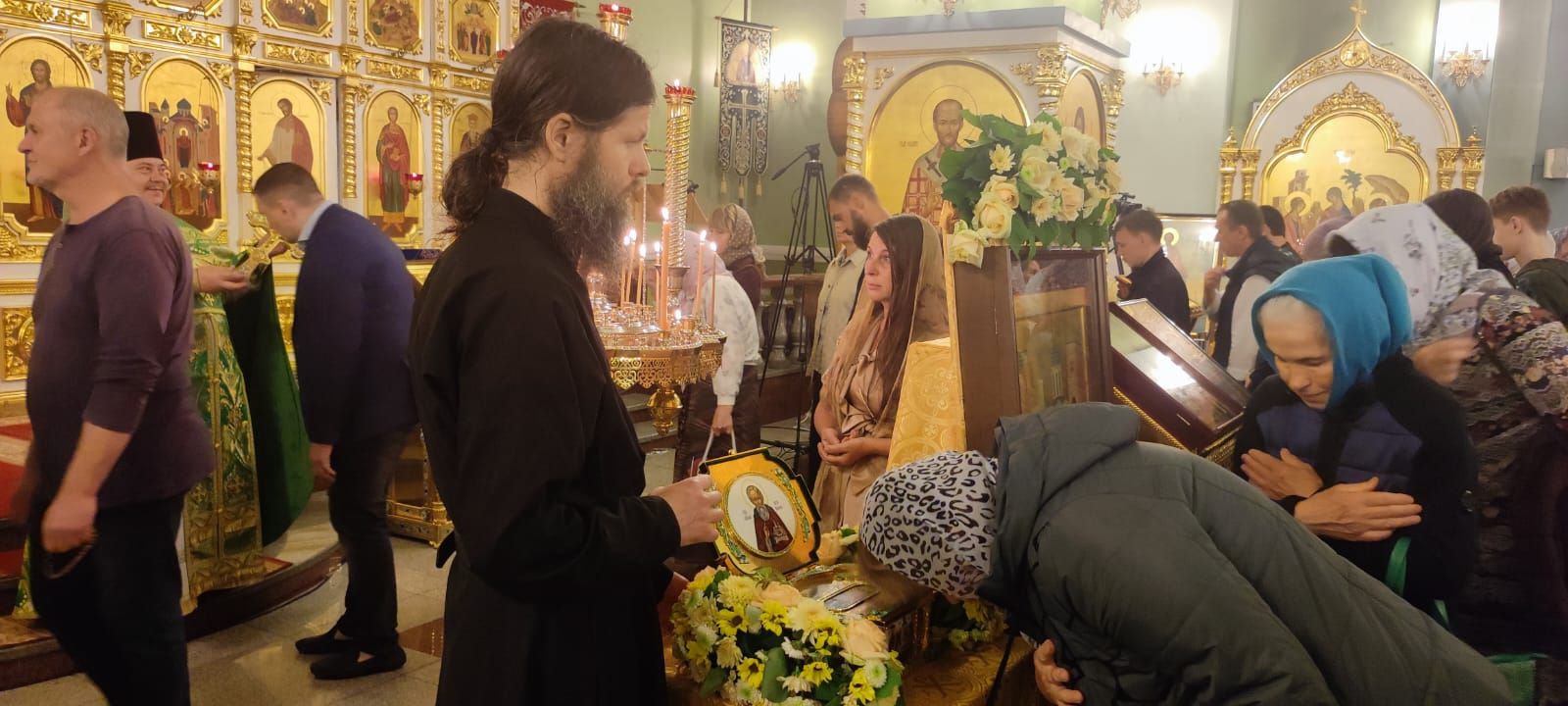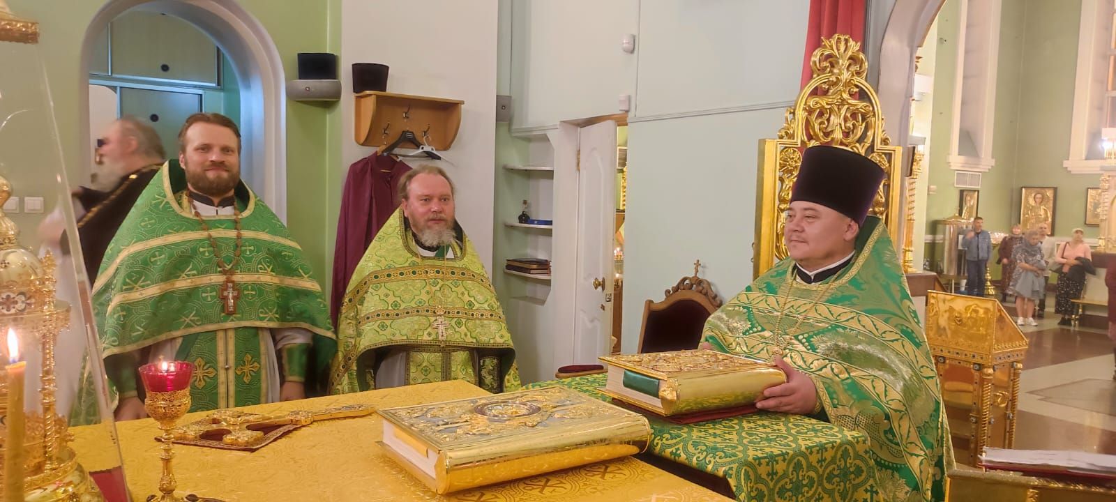 Богослужение совершил благочинный I Владивостокского благочиния Владивостокской епархии, исполняющий обязанности благочинного II Владивостокского благочиния, протоиерей Сергий Шуталев в сослужении игумена Антония (Каменчука), иеромонаха Палладия (Белоуса), иеромонаха Кирилла (Корниенко), иеромонаха Марка (Корнилова), иерея Дионисия Гордеева.