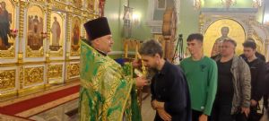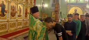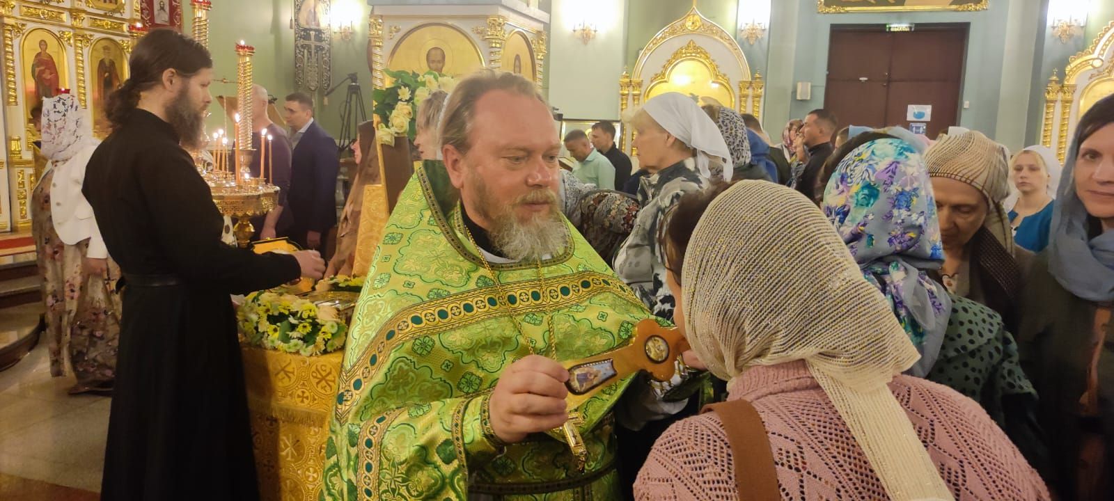 По заамвонной молитве было совершено славление святому преподобному Сергию, игумену Радонежскому, всея России Чудотворцу.