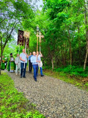 Причастившись на праздничной Божественной литургии Святых Даров, после богослужения вместе со всеми паломниками прошли Крестным ходом до колодца, что находится в лесной части приходской территории. После водосвятного молебна митрополит Вениамин (Пушкарь) произнёс проникновенную проповедь.