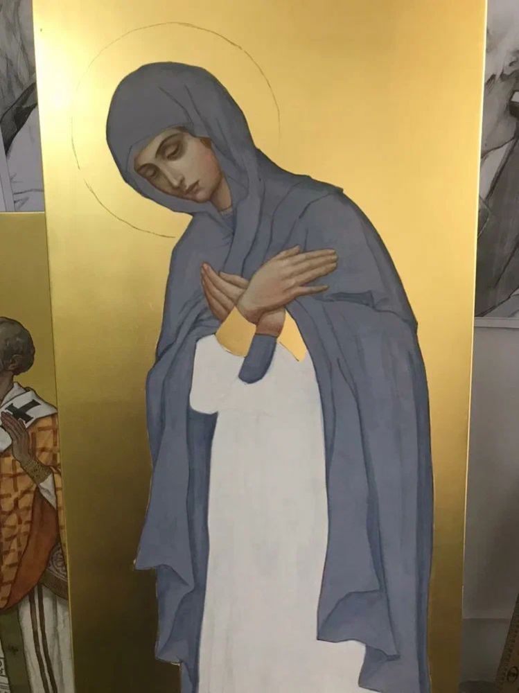 Те иконы, эскизы которых прошли полное согласование композиционных и стилистических решений, уже выполняются иконописцами в цвете. В ходе видеоконференции также были представлены фотографии хода работ из мастерских.
