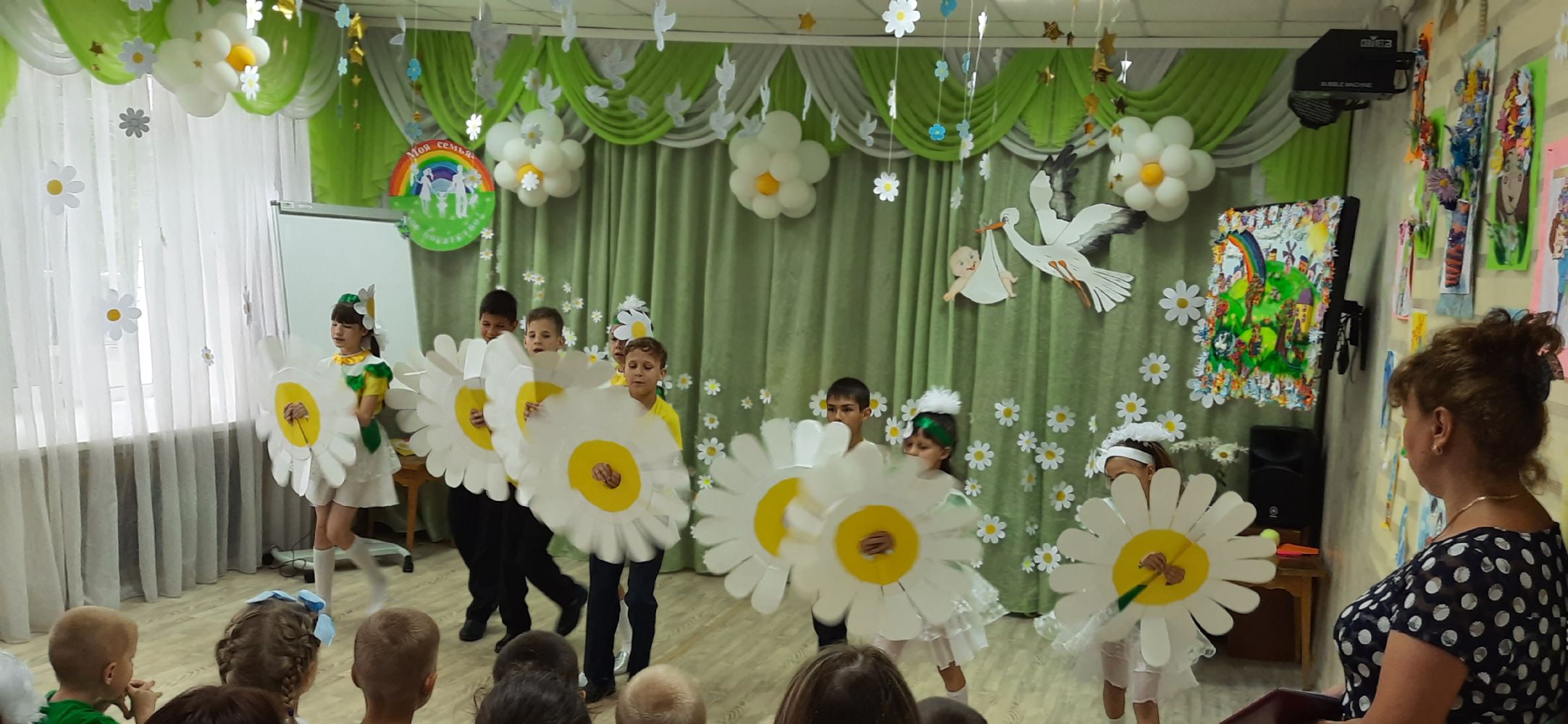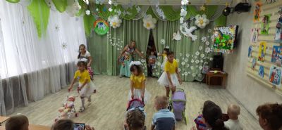 Присутствовали и родители. Зал был красиво украшен, звучали песни о святых Петре и Февронии, о семье. Дети танцевали, обыгрывали ситуации в семье, "строили" дом для Карлсона и Дюймовочки. В общем, подарили много радости, положительных эмоций, восторга и любви всем присутствующим.