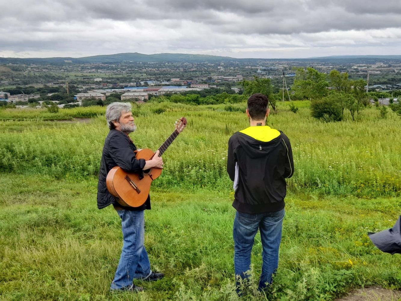 В поездке участвовал музыкант, исполняющий добрые и патриотические песни на разных точках маршрута.