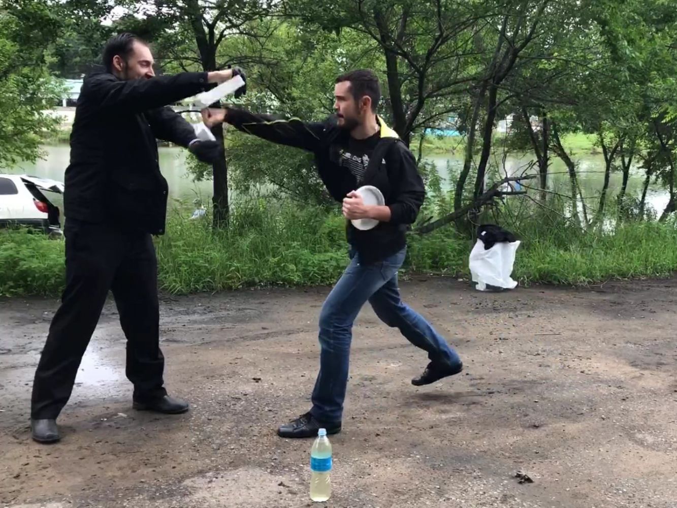 13. Эстафета с разбиванием пенопластовых кирпичей и переносом воды в тарелке на берегу Солдатского озера на юге Уссурийска.