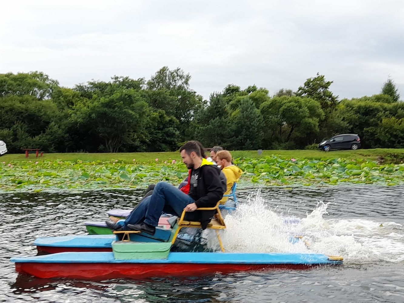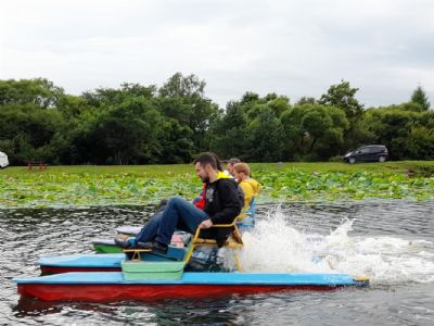 19. Соревнование на скорость на педальных катамаранах на озере.