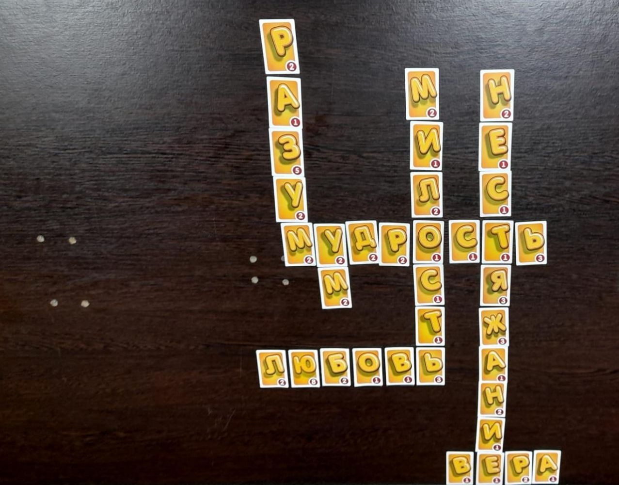 Далее прошла игра на составление слов, обозначающих добродетели, в виде кроссворда.