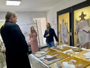 Ярославль. 11 августа 2022 года митрополит Владивостокский и Приморский Владимир посетил мастерские «Ковчег», где продолжается работа по написанию икон для строящегося Спасо-Преображенского собора г. Владивостока.
