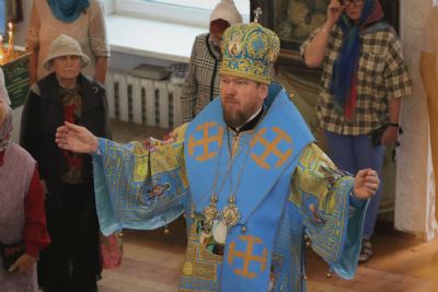 В завершение богослужения настоятель храма иерей Илия Точуков от имени клира и прихожан поздравил митрополита Владимира с праздником, поблагодарил за совместную молитву и преподнес букет цветов.