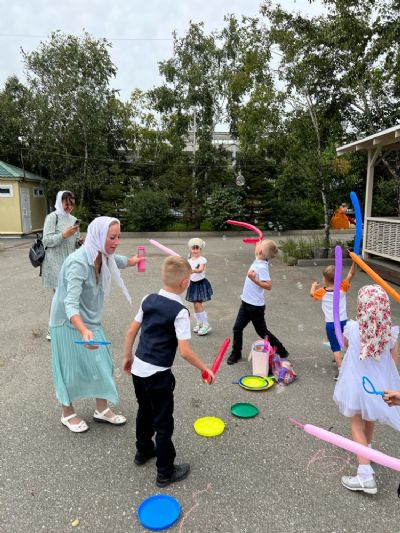По окончании молебна учащиеся отправились на праздничную трапезу, а затем дети активно участвовали в играх на свежем воздухе. Надували мыльные пузыри удивительной формы, играли воздушными шарами, развивая ловкость и быстроту реакции.