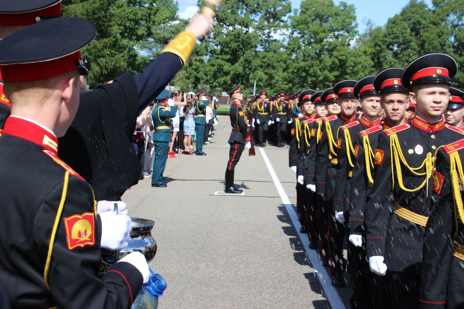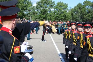 В завершение торжественной церемонии отец Павел окропил святой водой строй суворовцев и новых воспитанников СВУ, прошедших торжественным маршем перед трибуной с почетными гостями.