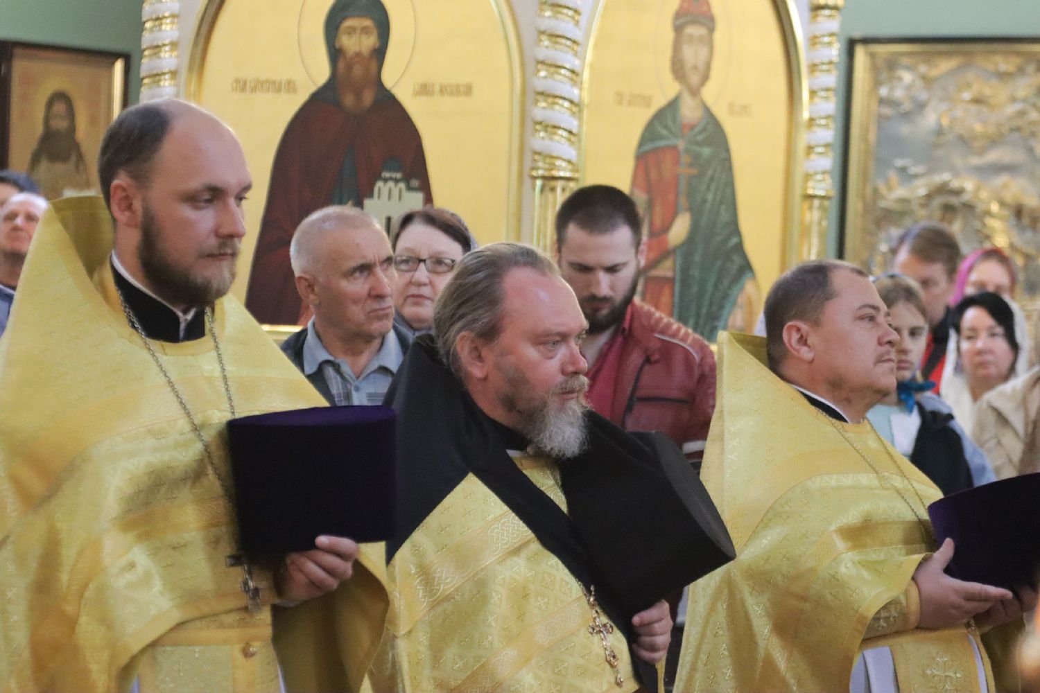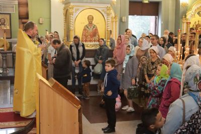 По отпусте литургии митрополит Владимир возглавил совершение славления и вознес молитву святым благоверным князю Петру и княгине Февронии, Муромским чудотворцам.