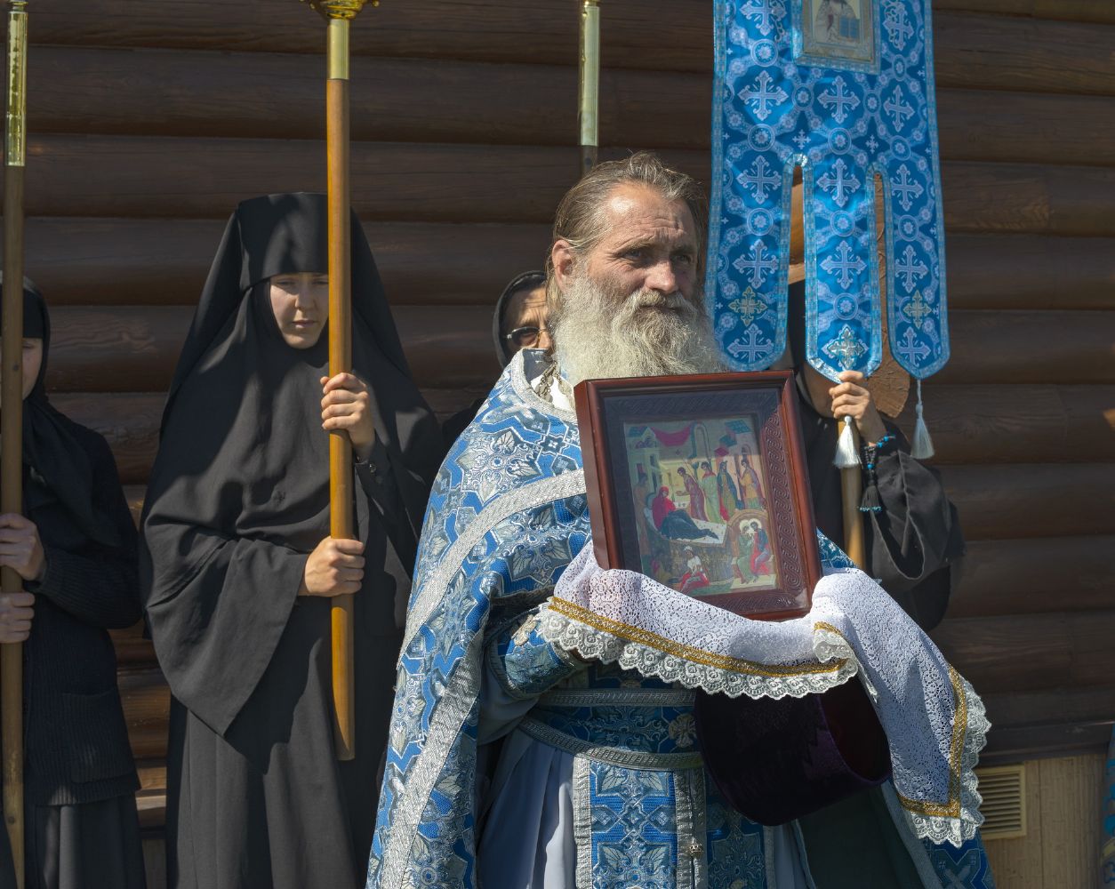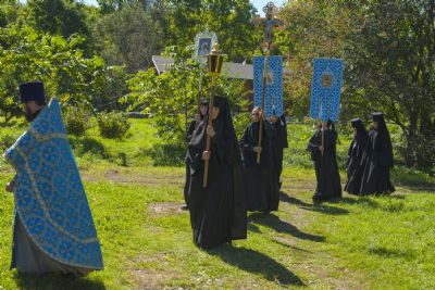 По завершении литургии был совершен крестный ход по территории обители.