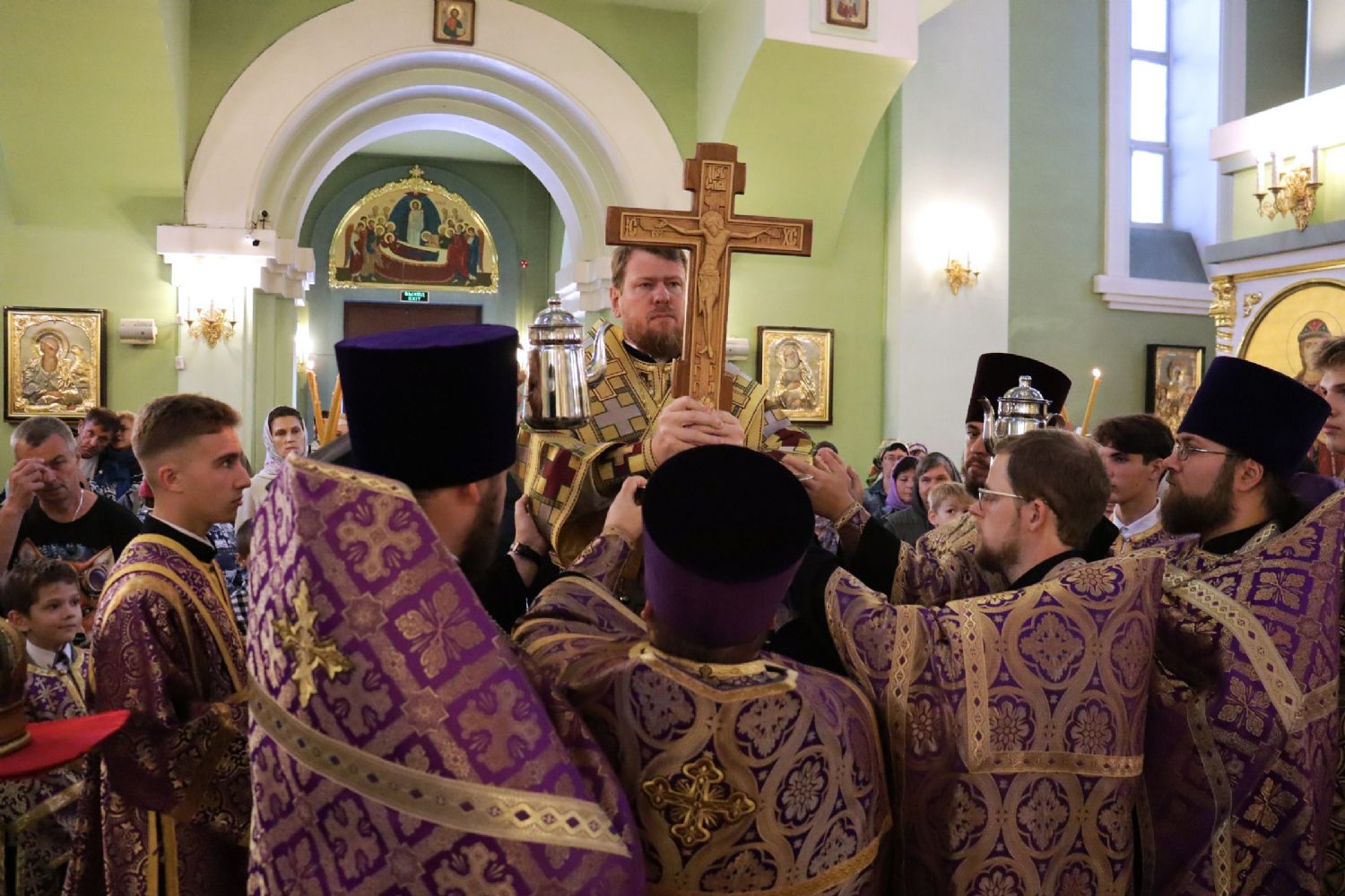 Митрополит Владимир совершил всенощное бдение с чином Воздвижения Креста Господня в Покровском соборе