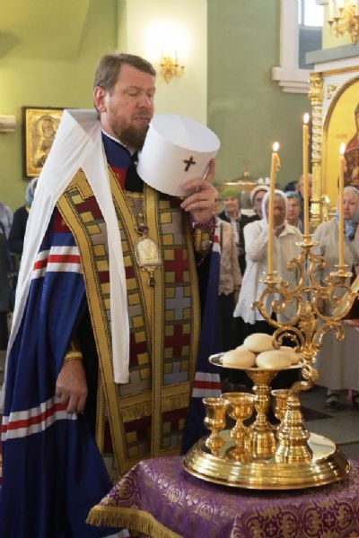 По окончании чина Воздвижения Креста владыка Владимир совершил помазание верующих освященным елеем.