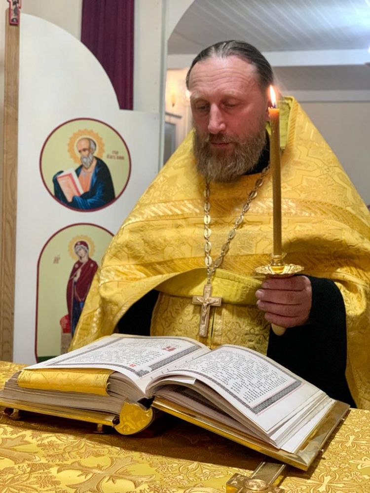 Пока я один на два прихода, литургия будет служиться по субботам в 9 утра, вечерня в пятницу в 17. Надо всем приходить и участвовать в евхаристии, даже если кто-то уже привык посещать другой храм. Хотя бы некоторое время, совершить маленький подвиг ради Господа. Спаси всех Господь!"