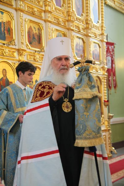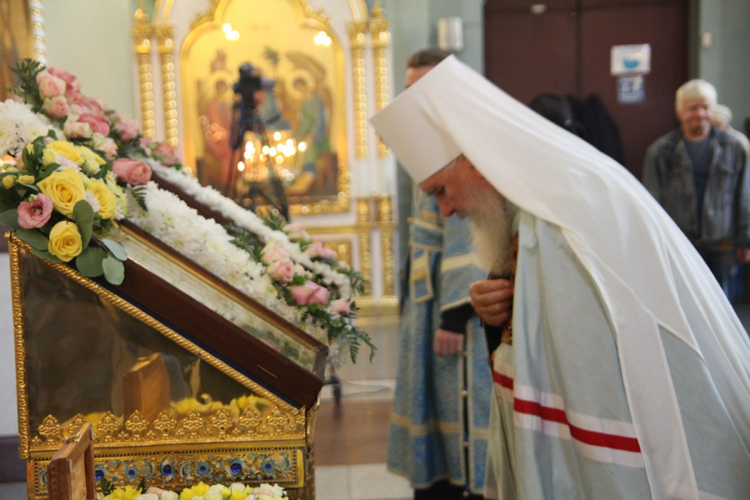 В завершение богослужения митрополит Климент обратился к молящимся с архипастырским словом и поздравил прихожан с кануном праздника Покрова Пресвятой Богородицы.
