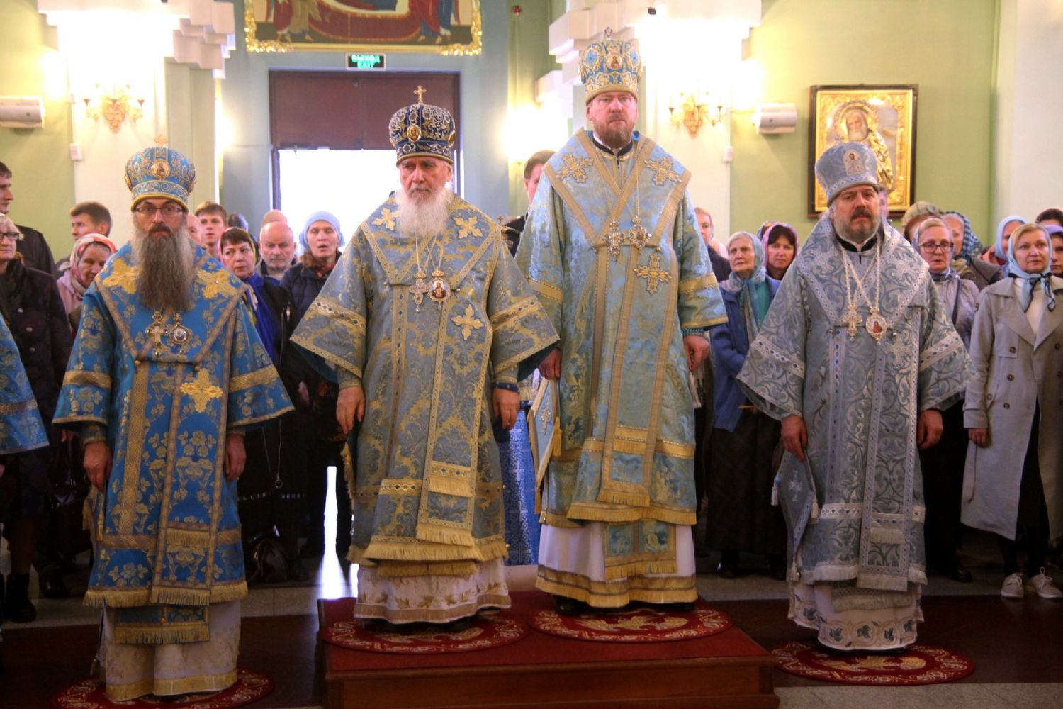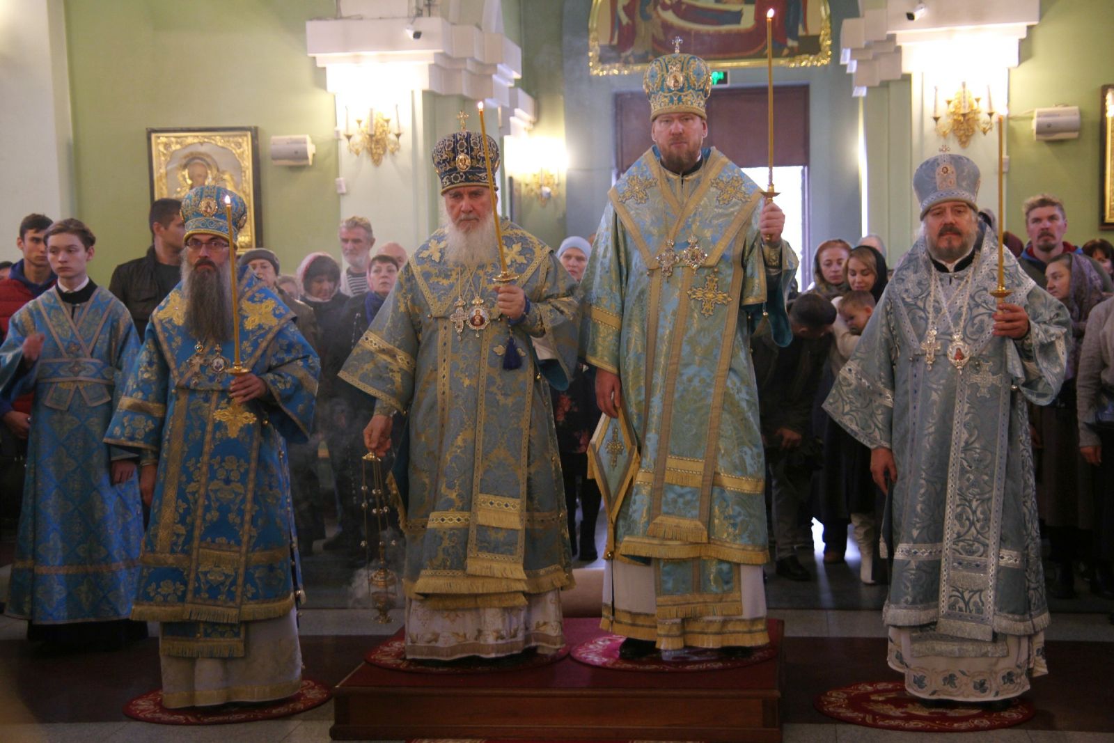 Завтра, в день праздника Покрова Пресвятой Владычицы нашей Богородицы и Приснодевы Марии, митрополит Калужский и Боровский Климент и митрополит Владивостокский и Приморский Владимир в сослужении епископа Уссурийского Иннокентия, викария Владивостокской епархии, и епископа Находкинского и Преображенского Николая совершат соборную Божественную литургию в Покровском соборе (начало богослужения в 9:00).