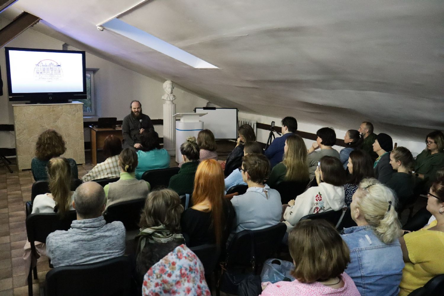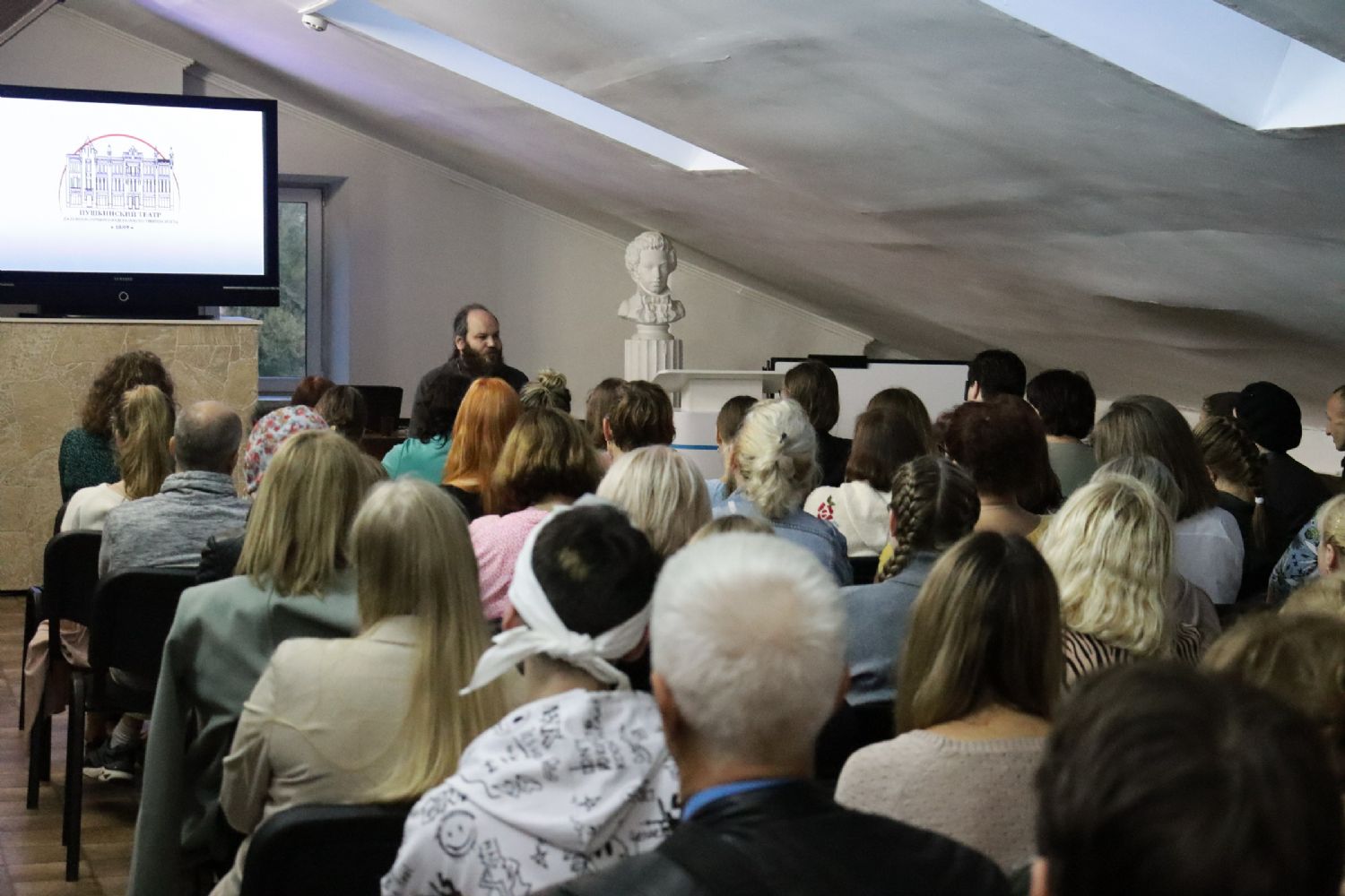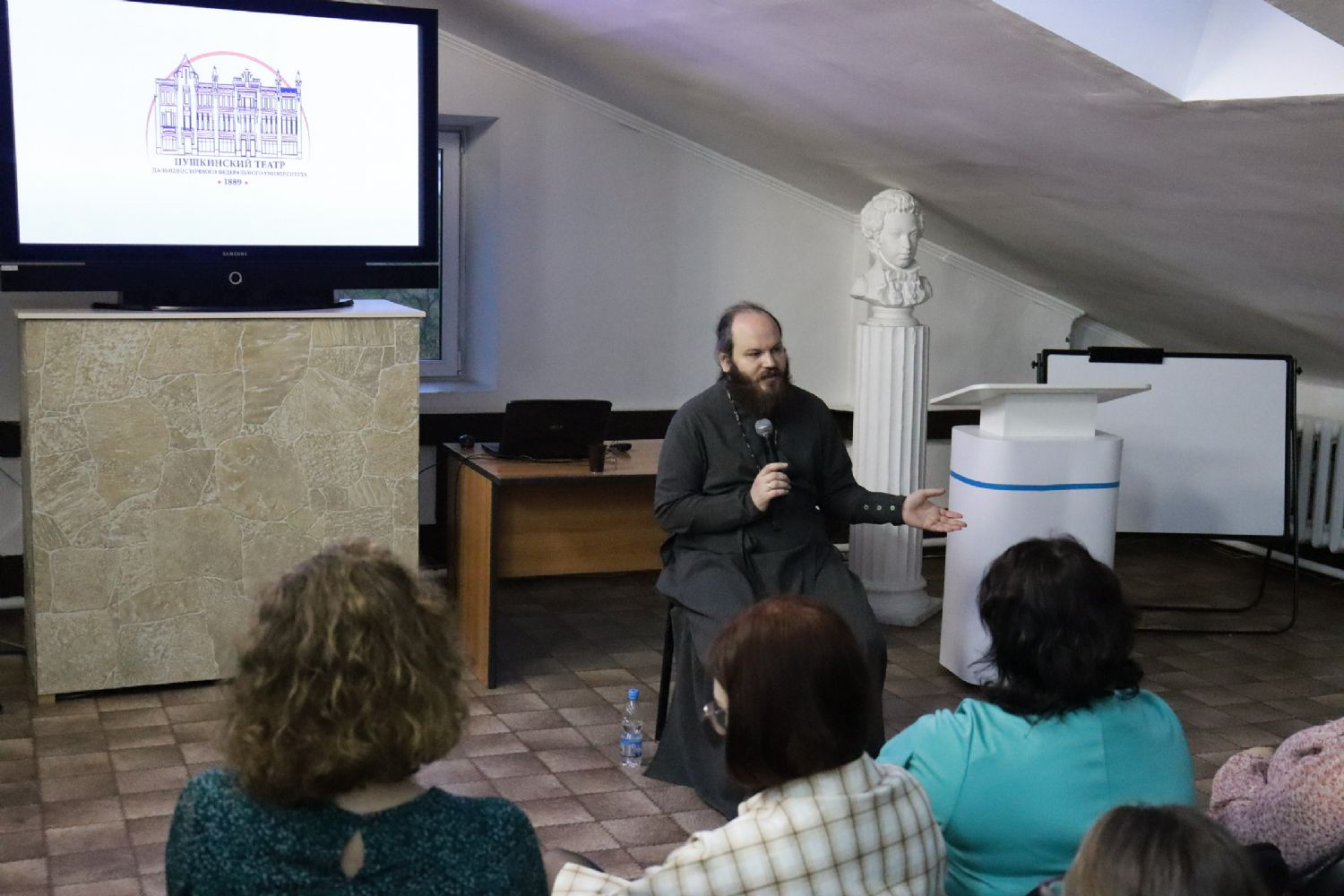 Владивосток. 13 октября 2022 года в рамках программы выставки-форума «Радость Слова» в Пушкинском театре настоятель храма святого великомученика Георгия Победоносца поселка Нахабино Московской области, миссионер и популярный блогер, священник Павел Островский провел встречу-беседу.