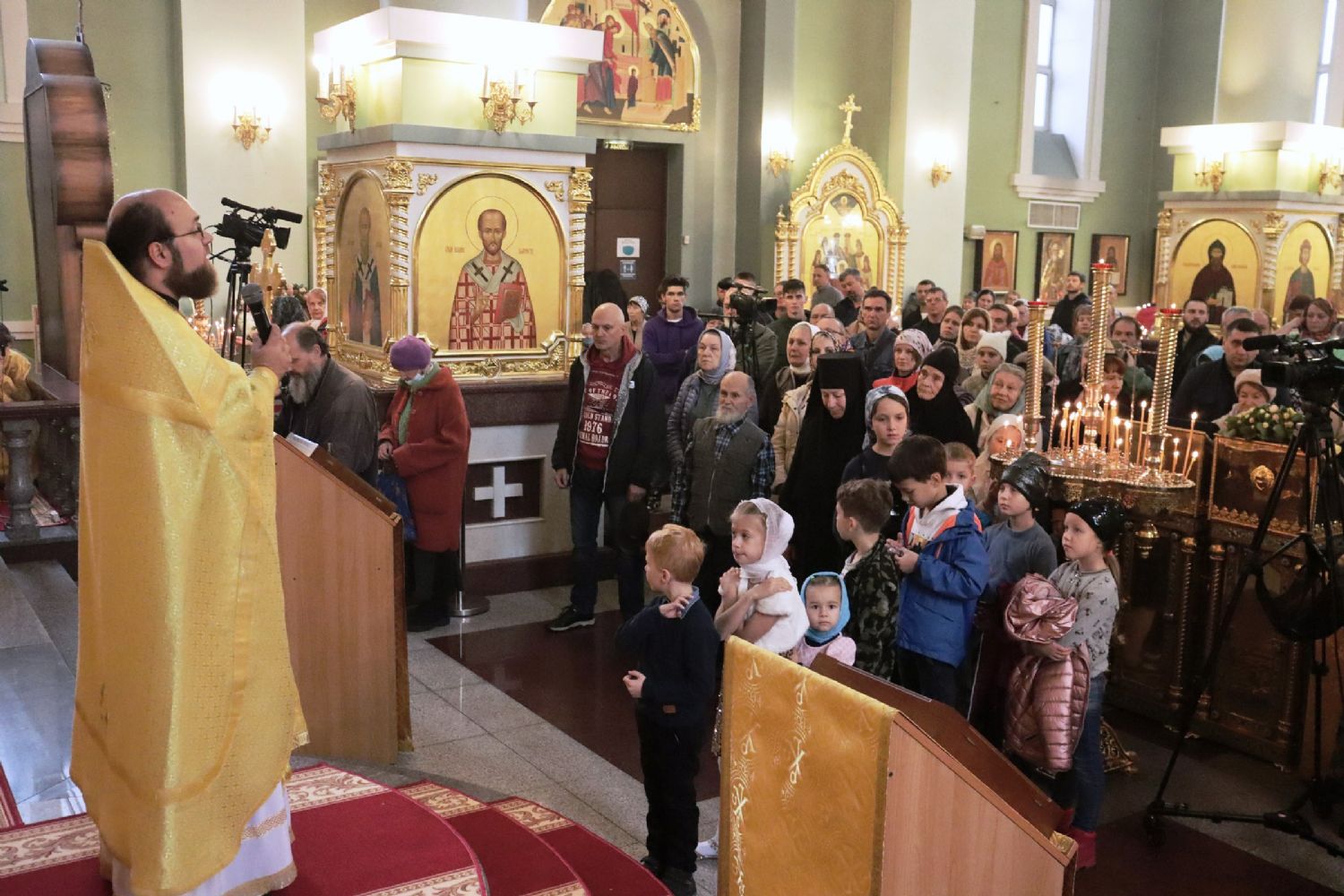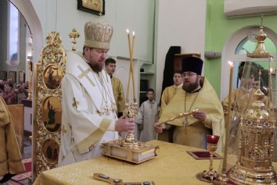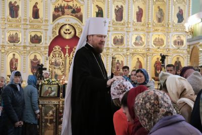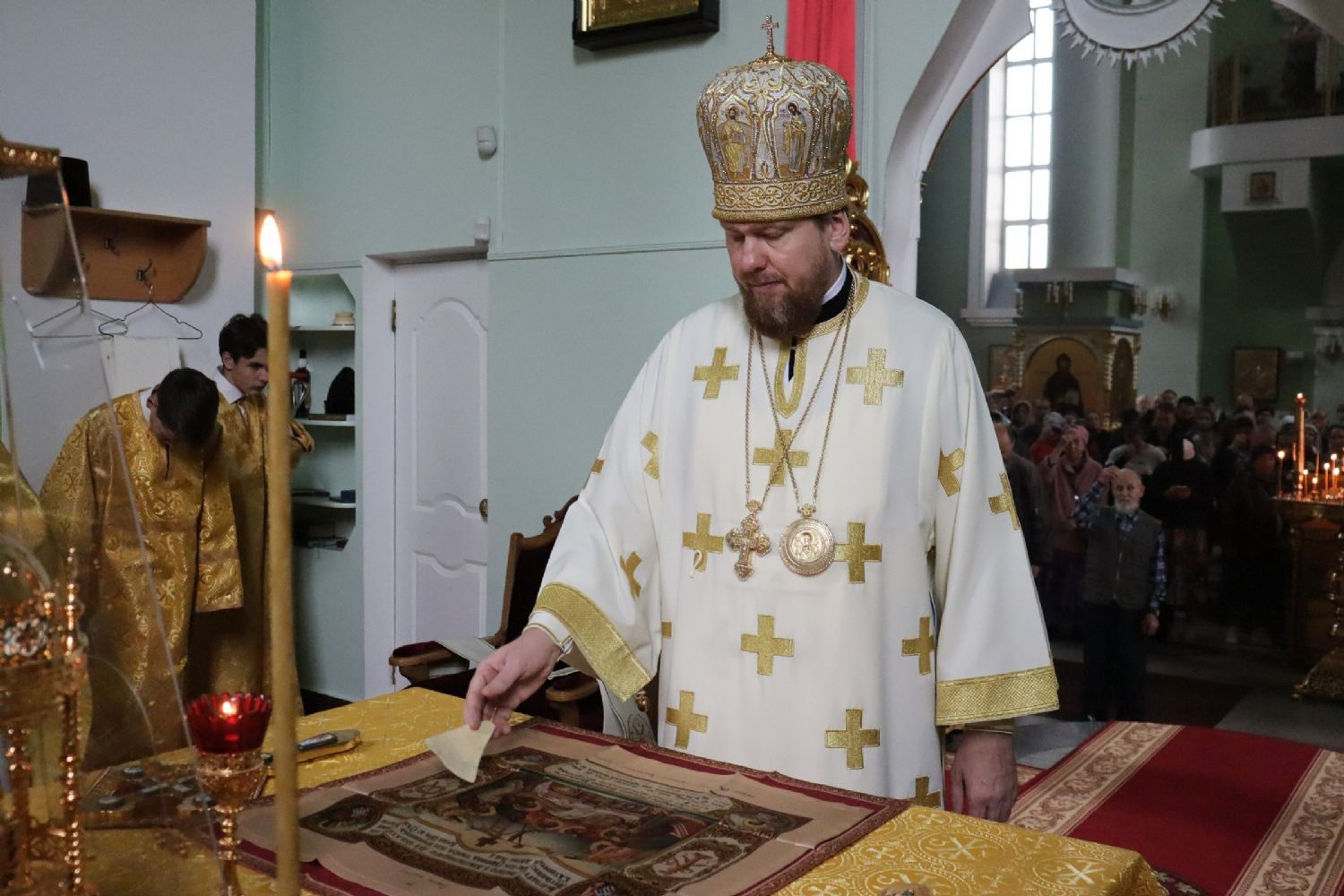 В завершение богослужения владыка Владимир обратился к молящимся с архипастырским словом, посвященным евангельскому чтению, поздравил верующих с воскресным днем, сугубо поздравил причастников с принятием Святых Христовых Таин и преподал архипастырское благословение.