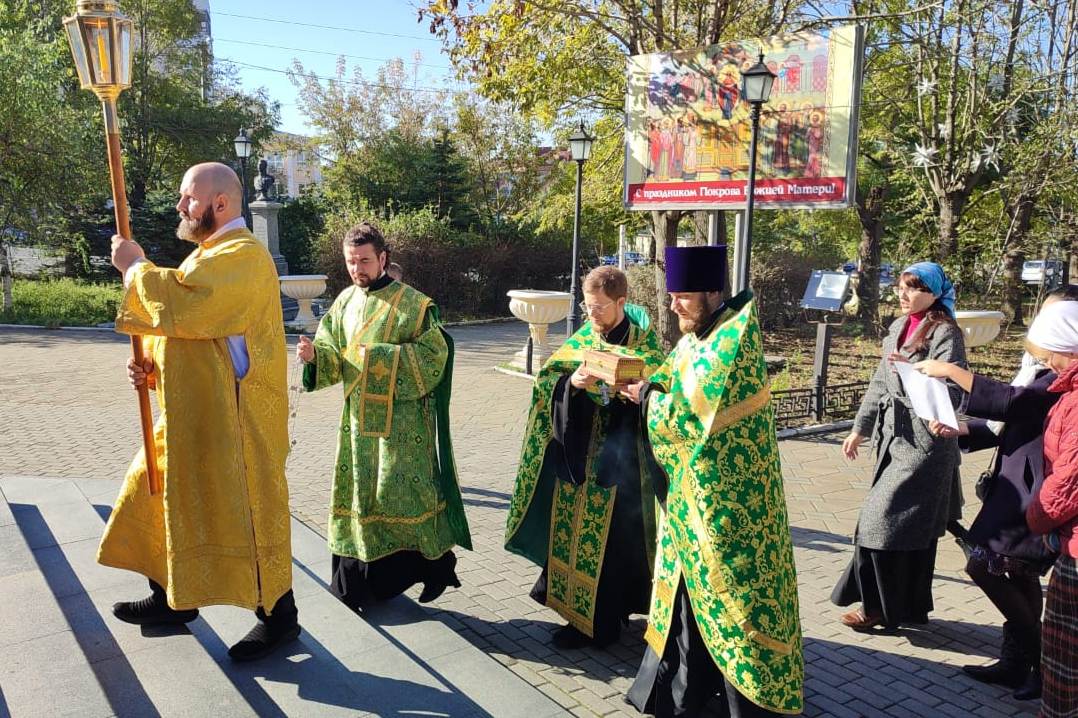 Владивосток. 16 октября 2022 года, в Неделю 18-ю по Пятидесятнице, прихожане и участники молодежного движения Покровского собора приняли участие в панихиде возле мемориального камня на территории Покровского парка, которую совершил игумен Антоний (Каменчук).