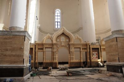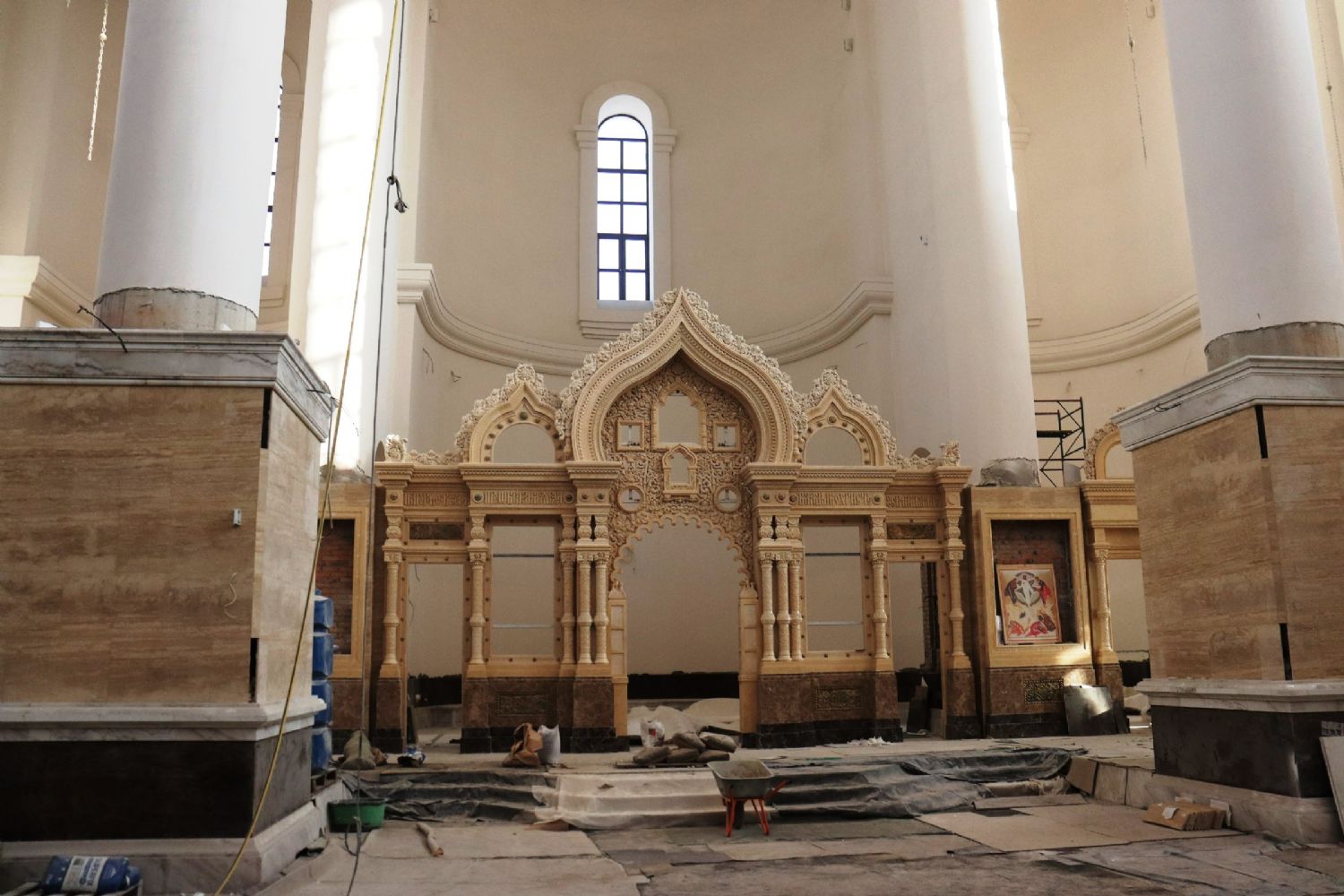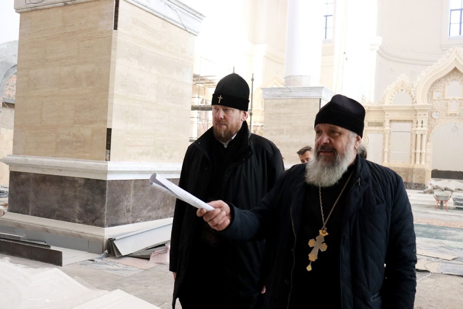 В настоящее время в соборе продолжаются отделочные работы: осуществляется отделка стен и полов натуральным камнем, установка балясин на барабане центрального купола.