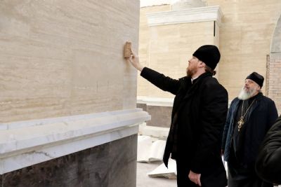 Также митрополит Владимир дал поручение проработать вопрос вычинки кирпичной кладки крылец и фасада собора.