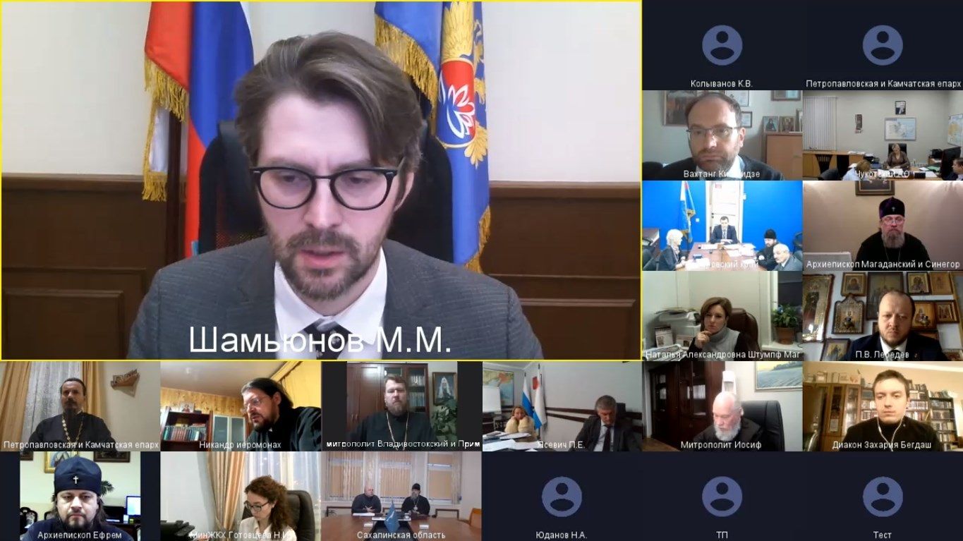 16 ноября 2022 года под председательством заместителя Министра Российской Федерации по развитию Дальнего Востока и Арктики М.М. Шамьюнова в режиме видеоконференции состоялось совещание представителей епархий Дальнего Востока и региональных органов исполнительной власти субъектов Дальневосточного федерального округа.