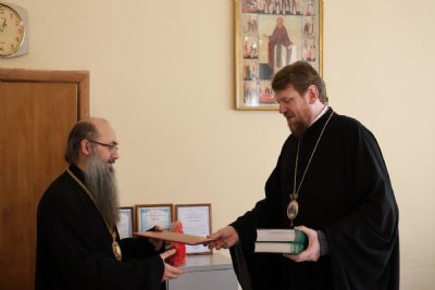 В епархиальном управлении со знаменательной датой епископа Иннокентия поздравил митрополит Владивостокский и Приморский Владимир.
