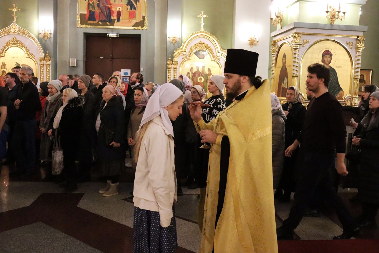 Богослужебные песнопения исполнил Митрополичий хор Покровского собора под управлением регента Елены Левада.