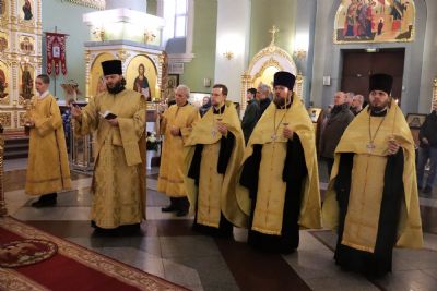 Его Высокопреосвященству сослужили: ключарь собора иерей Владимир Плотников; игумен Антоний (Каменчук); иерей Максим Точуков; иерей Виктор Архипов; ответственный за организацию архиерейских богослужений иерей Дионисий Ищенко.