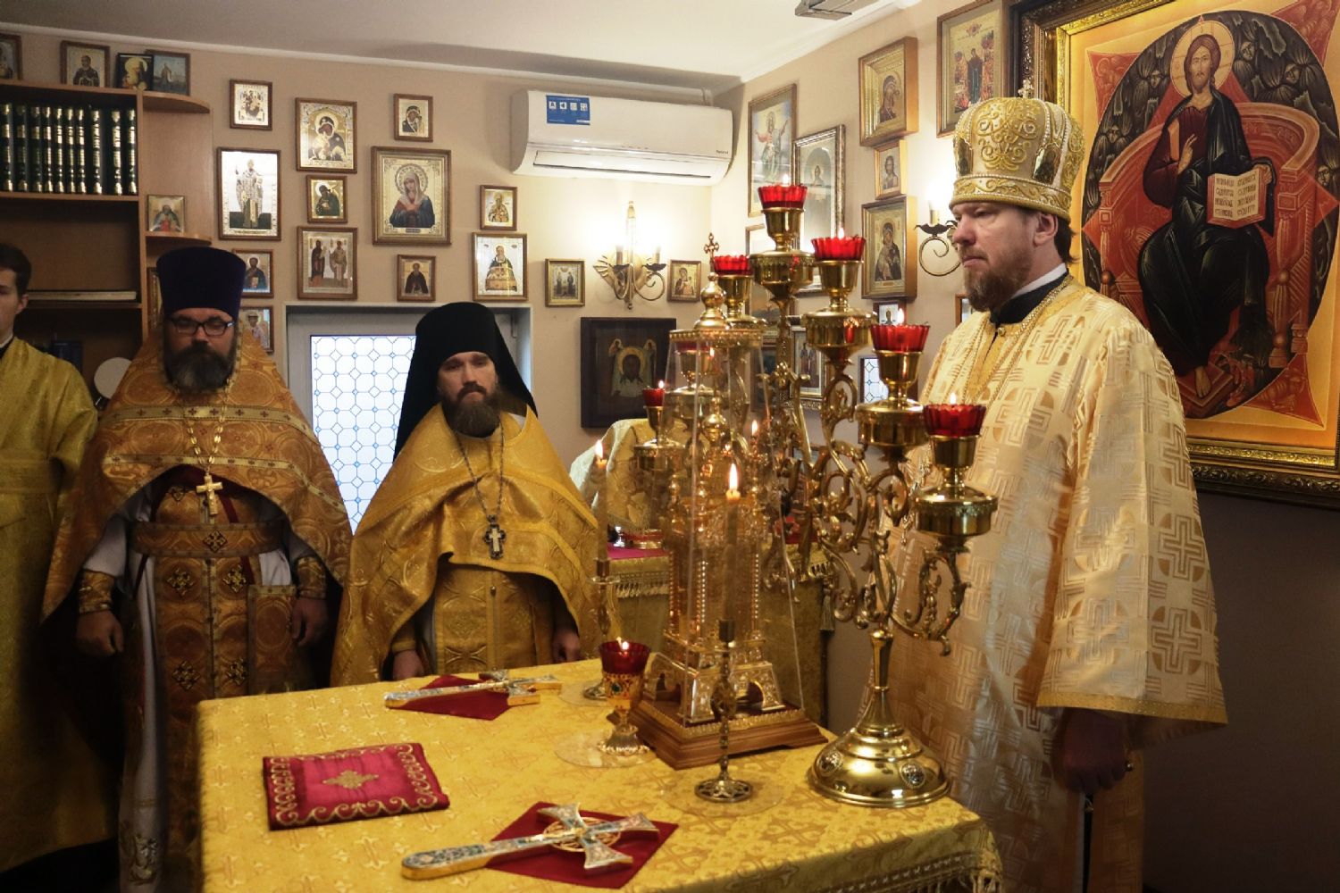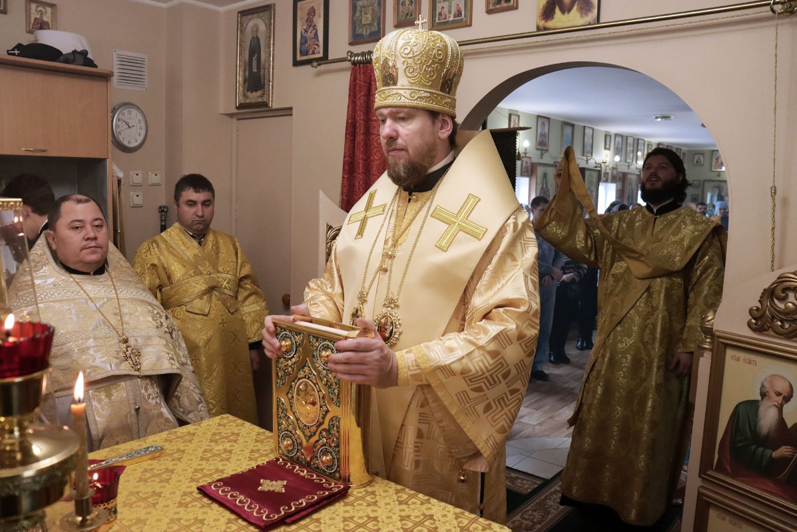 Его Высокопреосвященству сослужили: благочинный I Владивостокского благочиния Владивостокской епархии, исполняющий обязанности благочинного II Владивостокского благочиния, настоятель храма святителя Спиридона протоиерей Сергий Шуталев; благочинный монастырей Владивостокской епархии, настоятель Свято-Серафимовского мужского монастыря игумен Климент (Кривоносов); настоятель Богоявленского храма города Артема протоиерей Иоанн Сергеев; настоятель храма Порт-Артурской иконы Торжества Пресвятой Богородицы иерей Илия Точуков; ответственный за организацию архиерейских богослужений иерей Дионисий Ищенко.