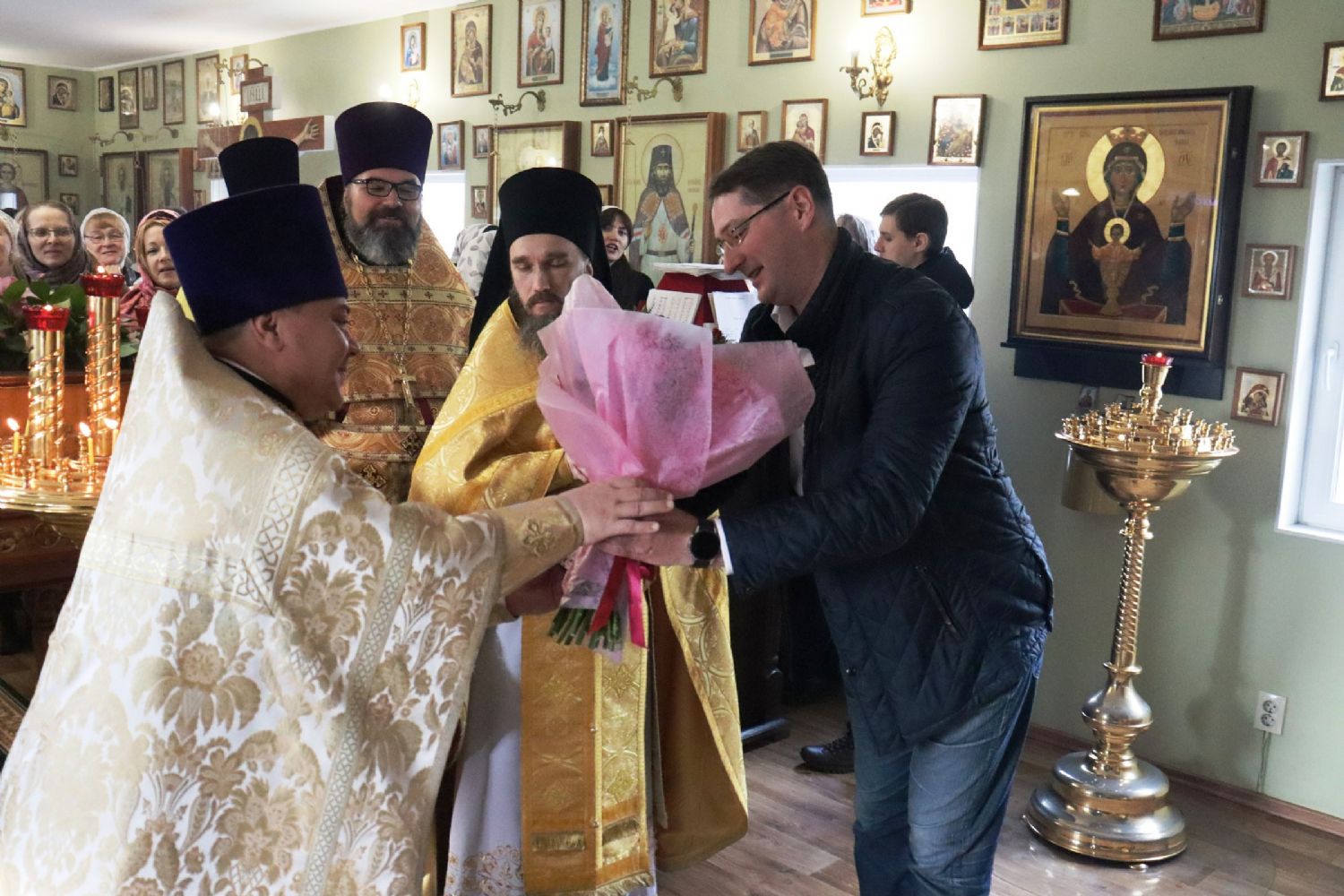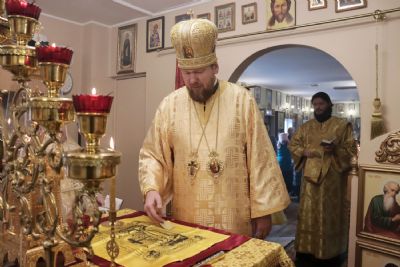 В завершение богослужения настоятель храма протоиерей Сергий Шуталев от имени клира и прихожан поблагодарил владыку за архипастырский визит и преподнес ему букет цветов.