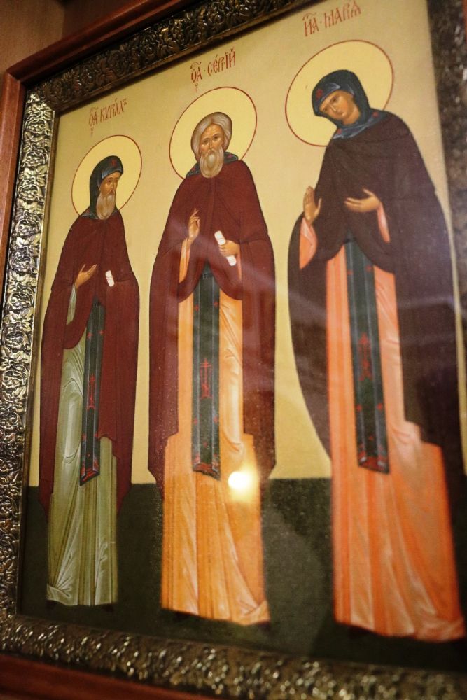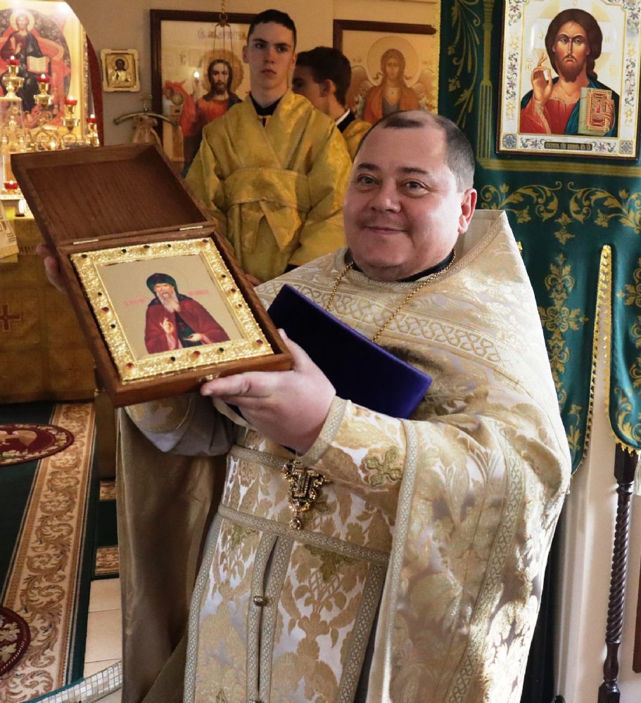 Затем глава Приморской митрополии поздравил протоиерея Сергия Шуталева с днем рождения и вручил ему икону святого преподобного Амвросия Оптинского.