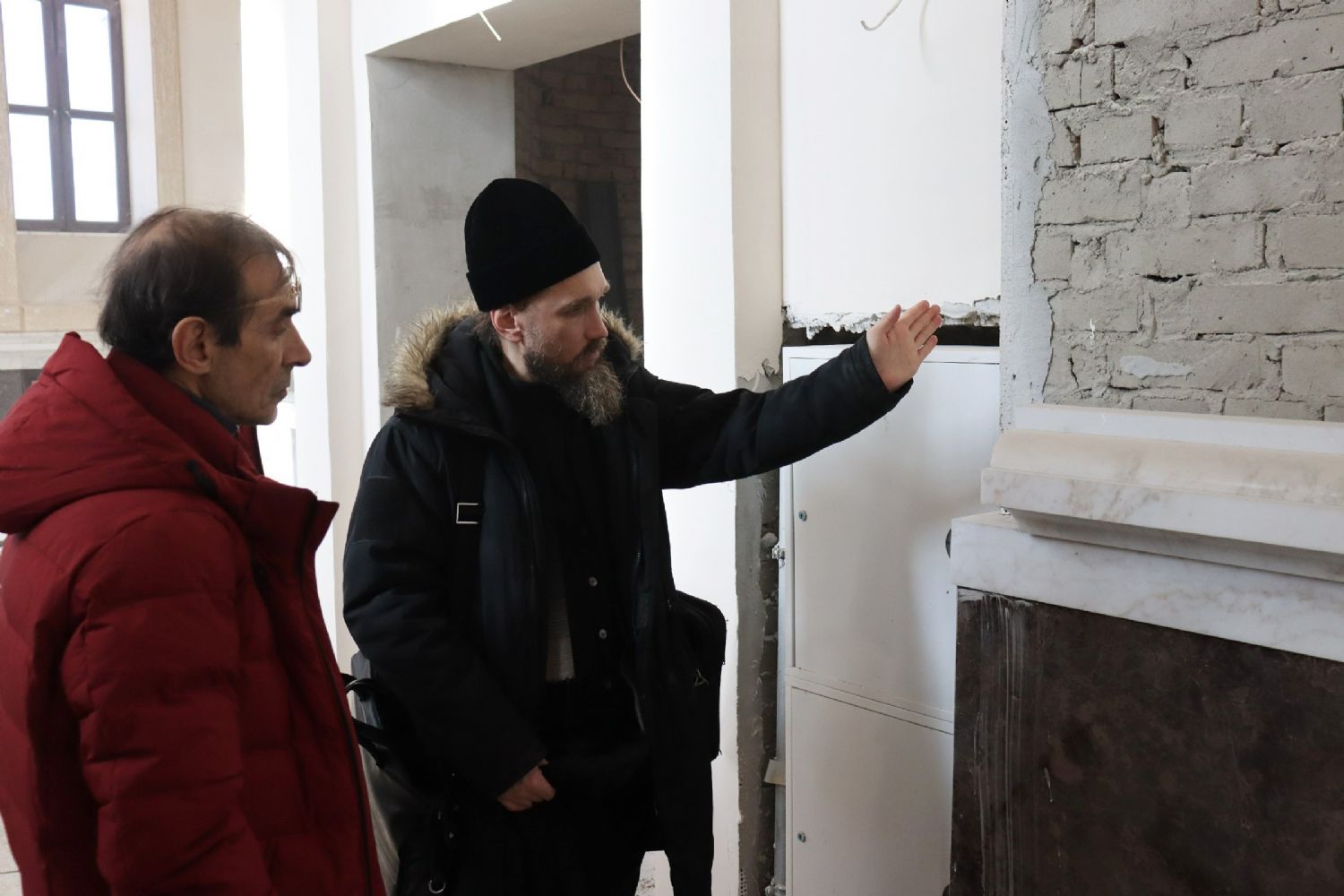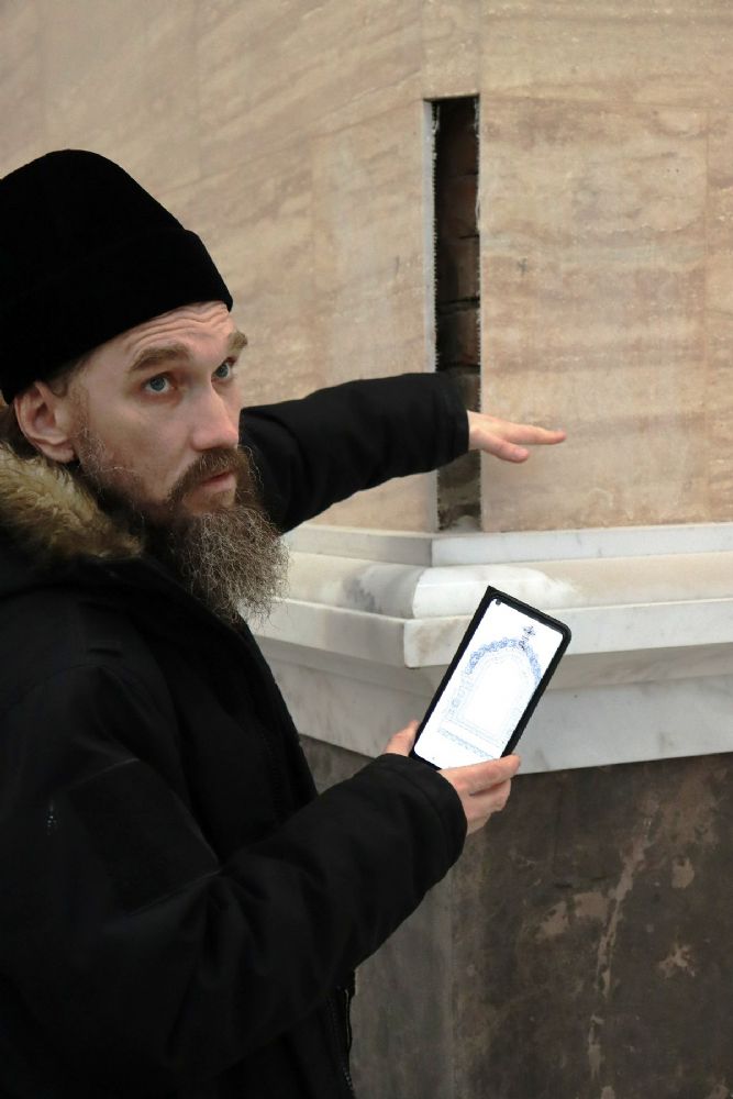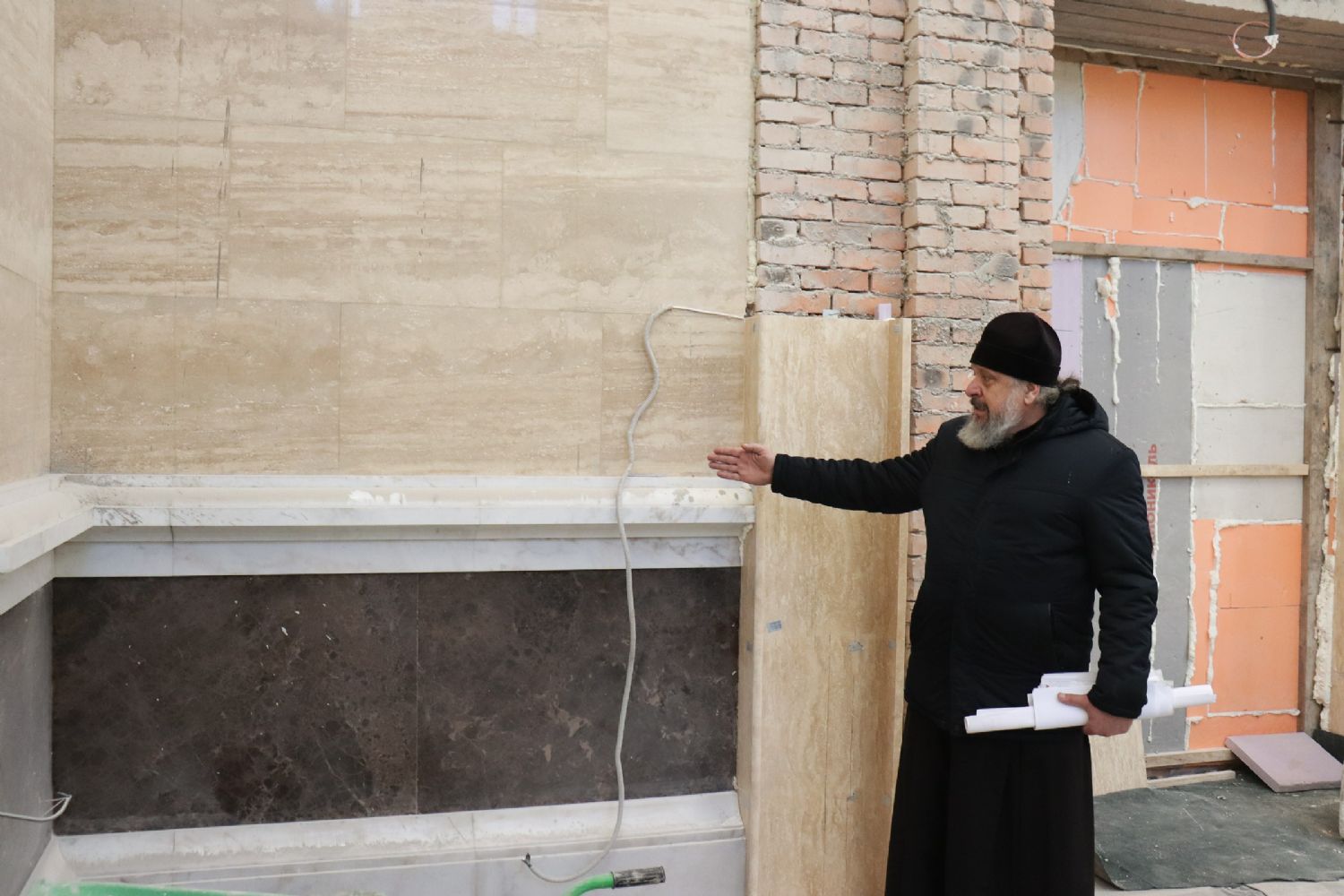 Представитель ООО «Гравитер» сообщил о ходе работ по отделке натуральным камнем колонн и порталов в храме.