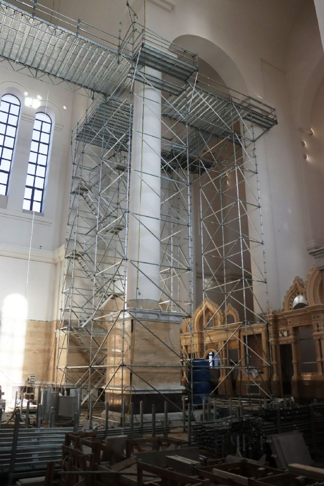 В настоящее время в соборе продолжаются отделочные работы: осуществляется отделка стен и полов натуральным камнем, установка балясин на барабане центрального купола.