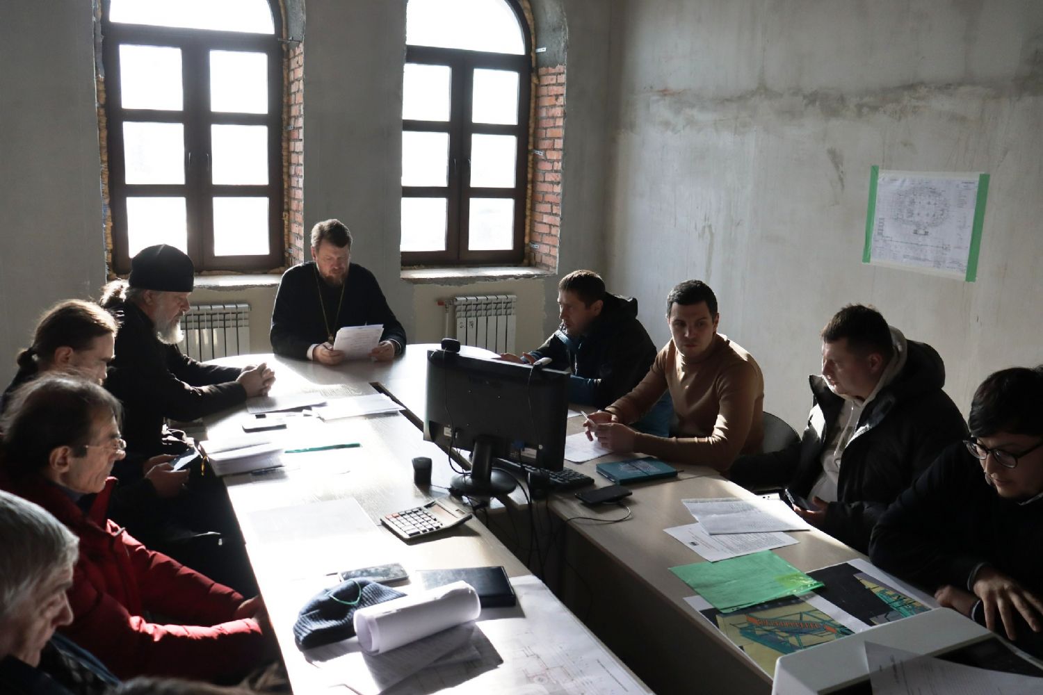 Участники совещания обсудили ряд вопросов, связанных с выполнением текущих и предстоящих работ, а также благоустройство территории собора.