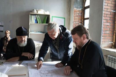 По окончании совещания митрополит Владимир осмотрел строительную площадку и ознакомился с ходом работ.