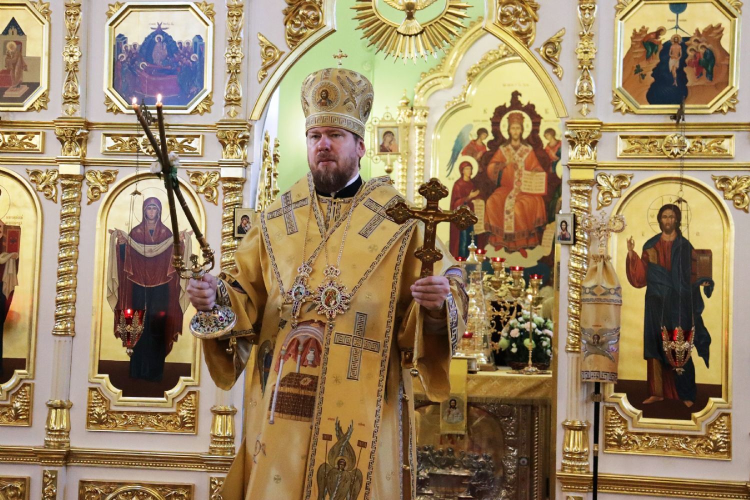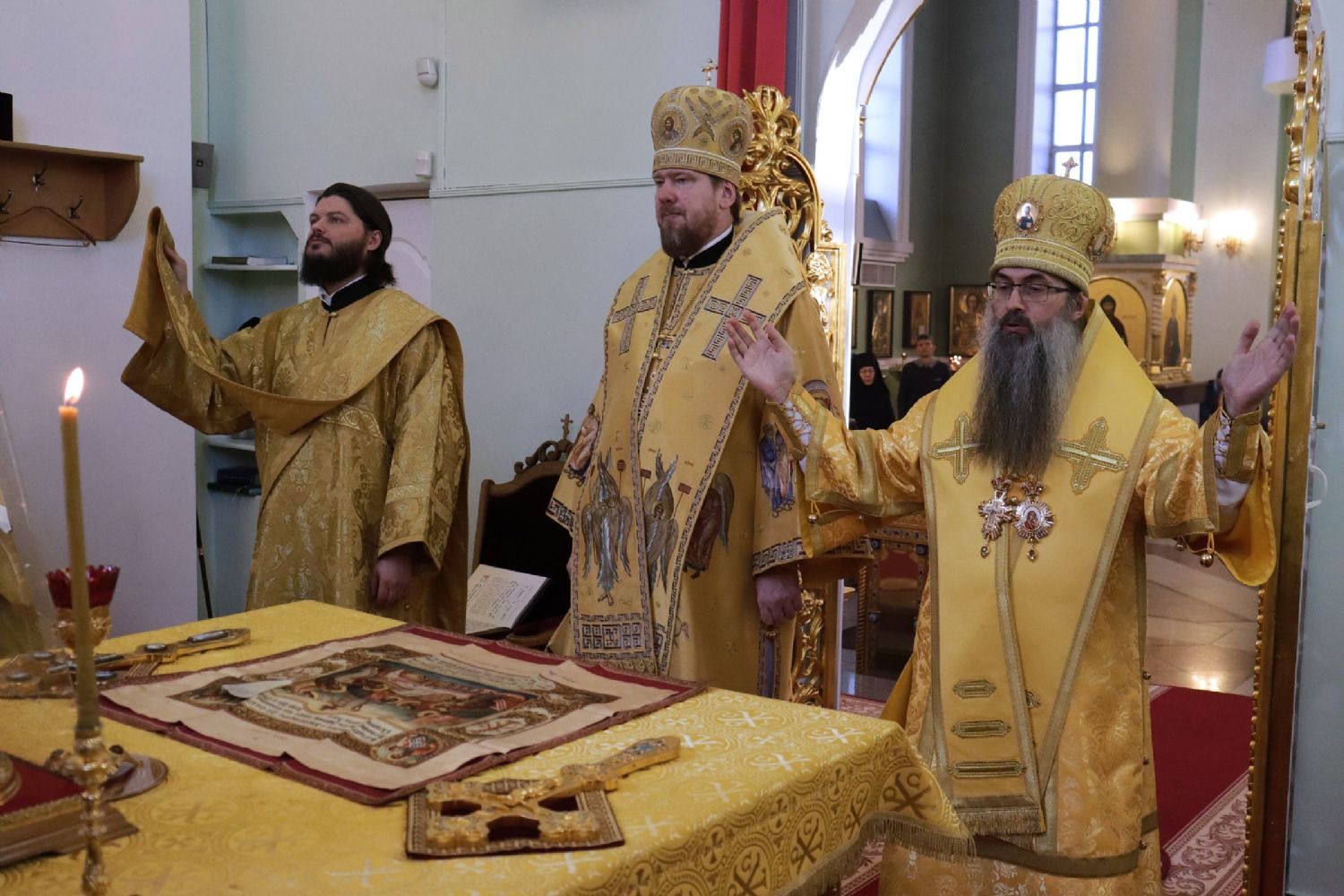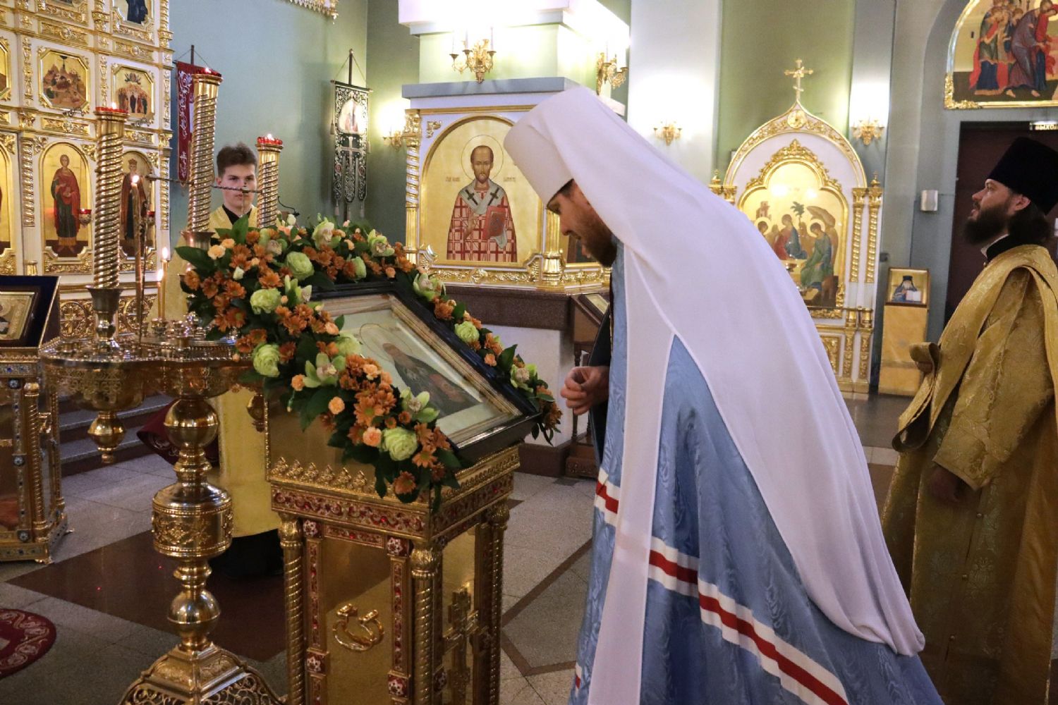 По окончании Божественной литургии от имени епископата и духовенства епархии со словами поздравления с 11-й годовщиной архиерейской хиротонии к главе Приморской митрополии обратился епископ Уссурийский Иннокентий и преподнес букет цветов.