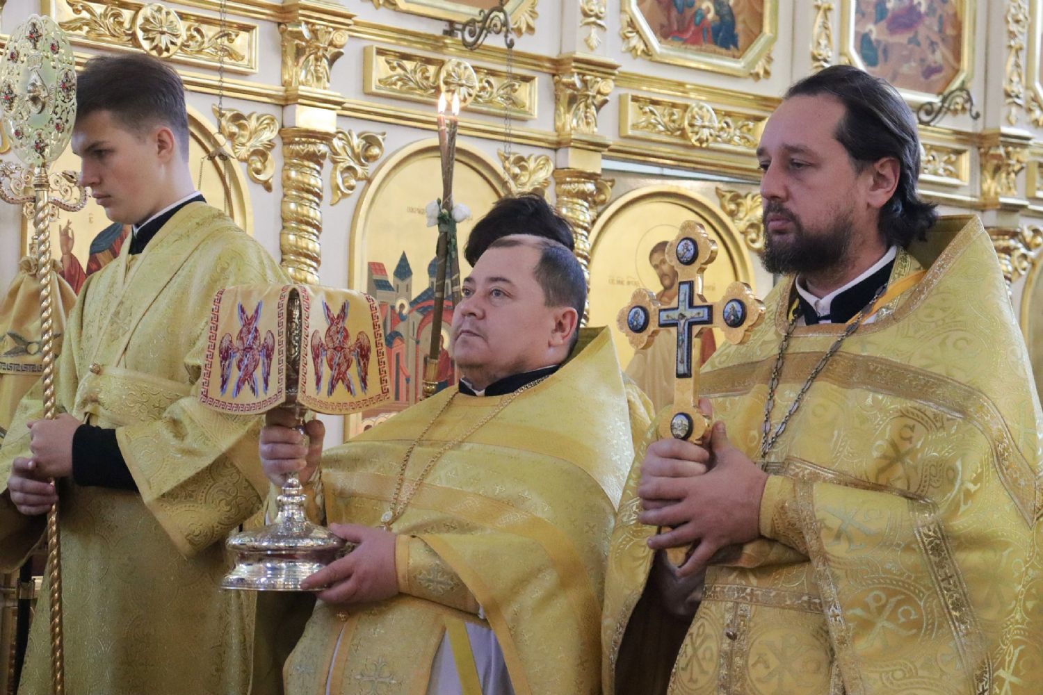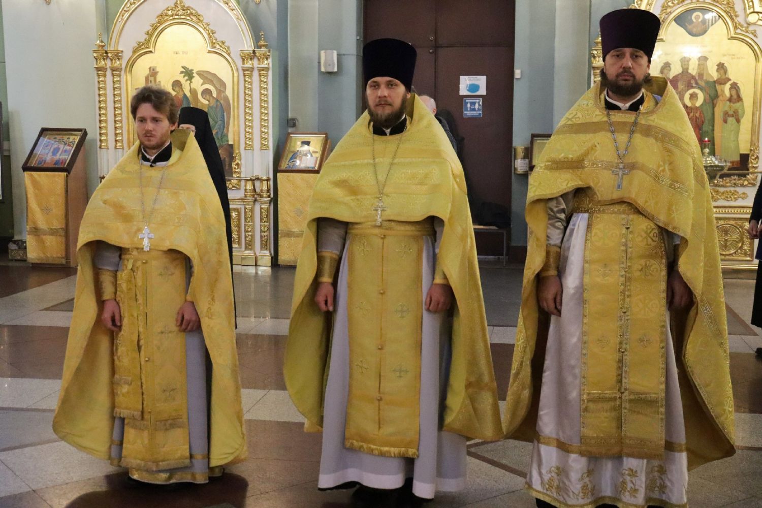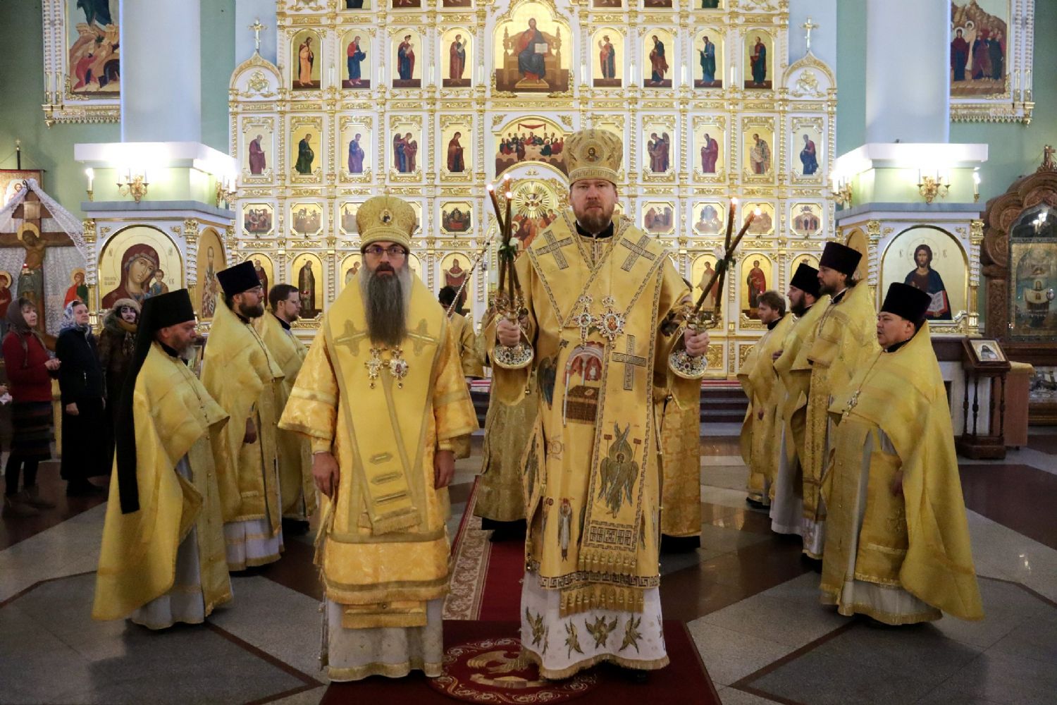 Архипастырям сослужили: благочинный I Владивостокского благочиния Владивостокское епархии, исполняющий обязанности благочинного II Владивостокского благочиния, настоятель храма святителя Николая Чудотворца г. Владивостока протоиерей Сергий Шуталев; игумен Антоний (Каменчук), настоятель храма Апостола Андрея Первозванного иерей Андрей Мельников, иерей Максим Точуков, иерей Виктор Архипов, иерей Сергий Зверев; ответственный за организацию архиерейских богослужений иерей Дионисий Ищенко.