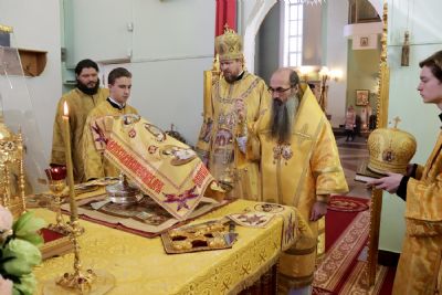 По отпусте литургии митрополит Владимир возглавил славление и вознес молитву святителю Филарету, митрополиту Московскому и Коломенскому.