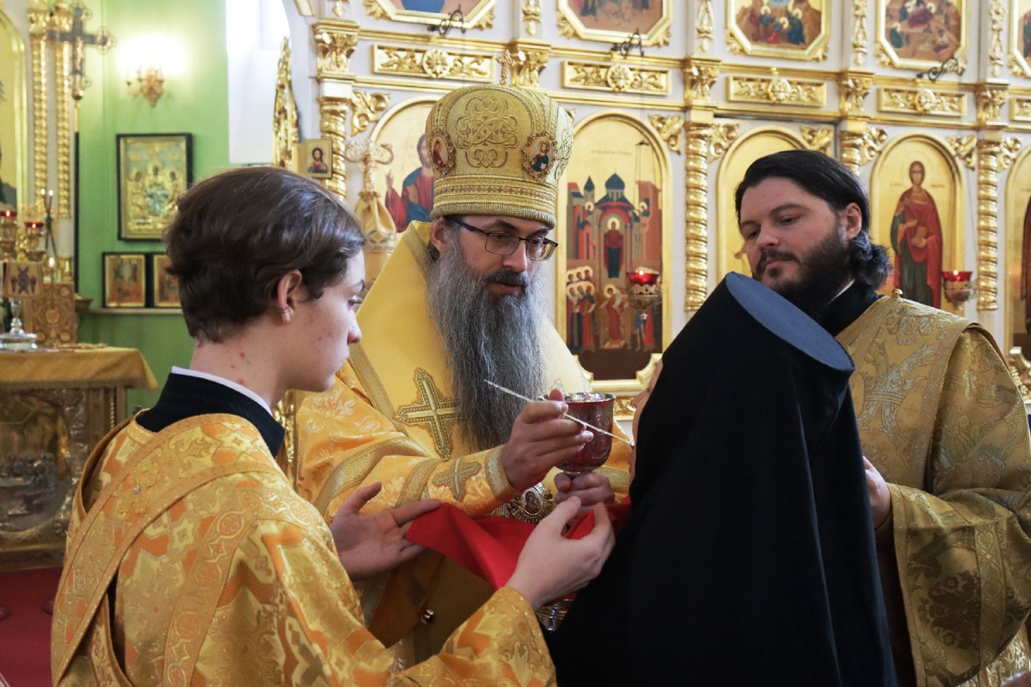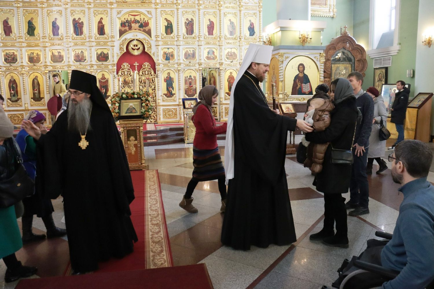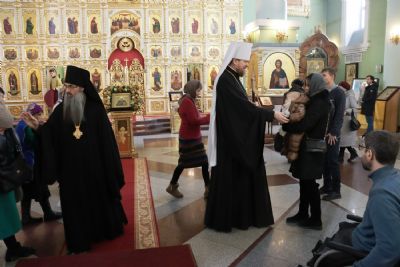 В завершение богослужения митрополит Владимир поблагодарил всех за совместную молитву, поздравил верующих с днем памяти святителя Филарета, сугубо поздравил причастников с принятием Святых Христовых Таин.