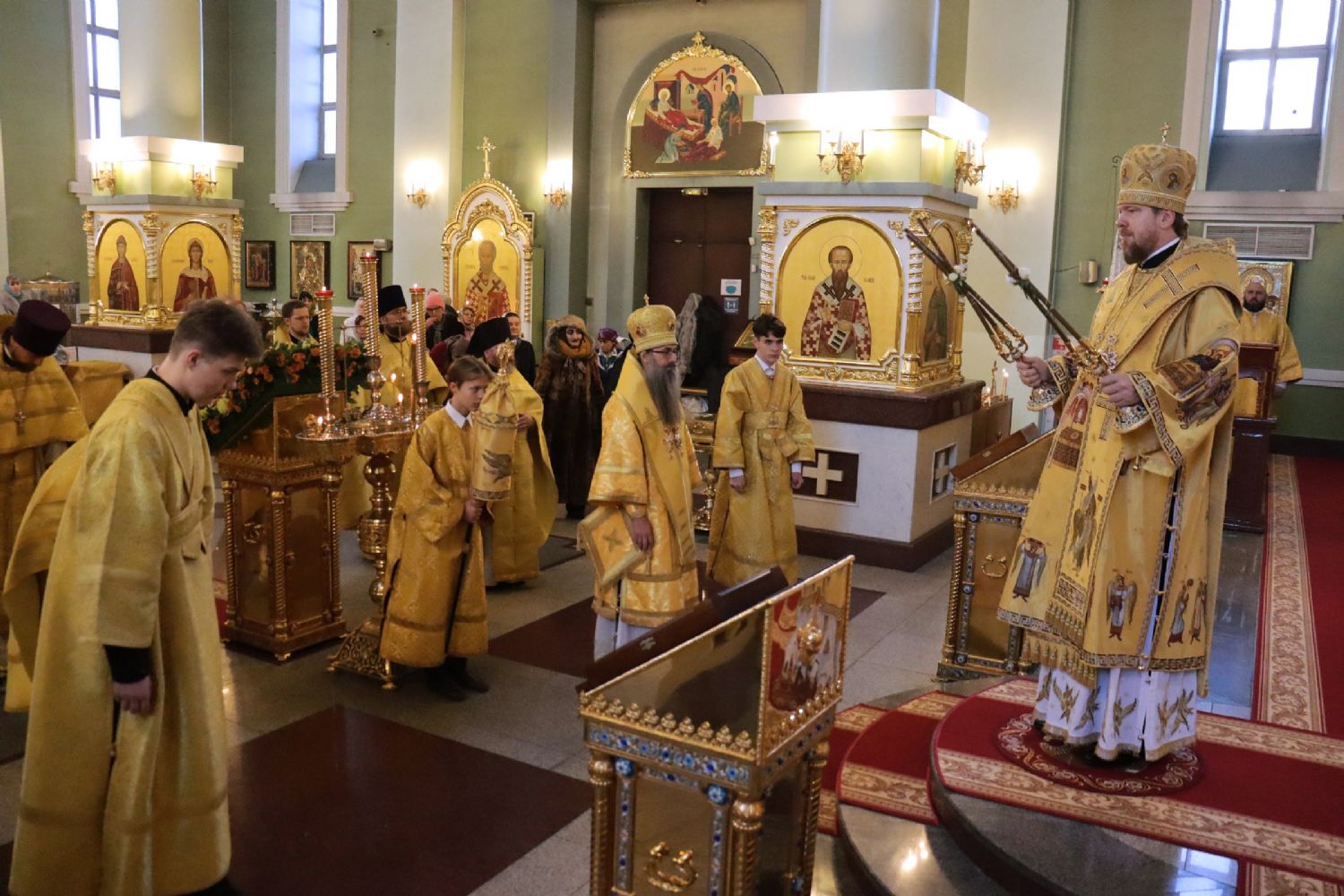Владивосток. 2 декабря 2022 года, в день памяти святителя Филарета, митрополита Московского и Коломенского, митрополит Владивостокский и Приморский Владимир в сослужении епископа Уссурийского Иннокентия, викария Владивостокской епархии, совершил Божественную литургию в Покровском соборе.