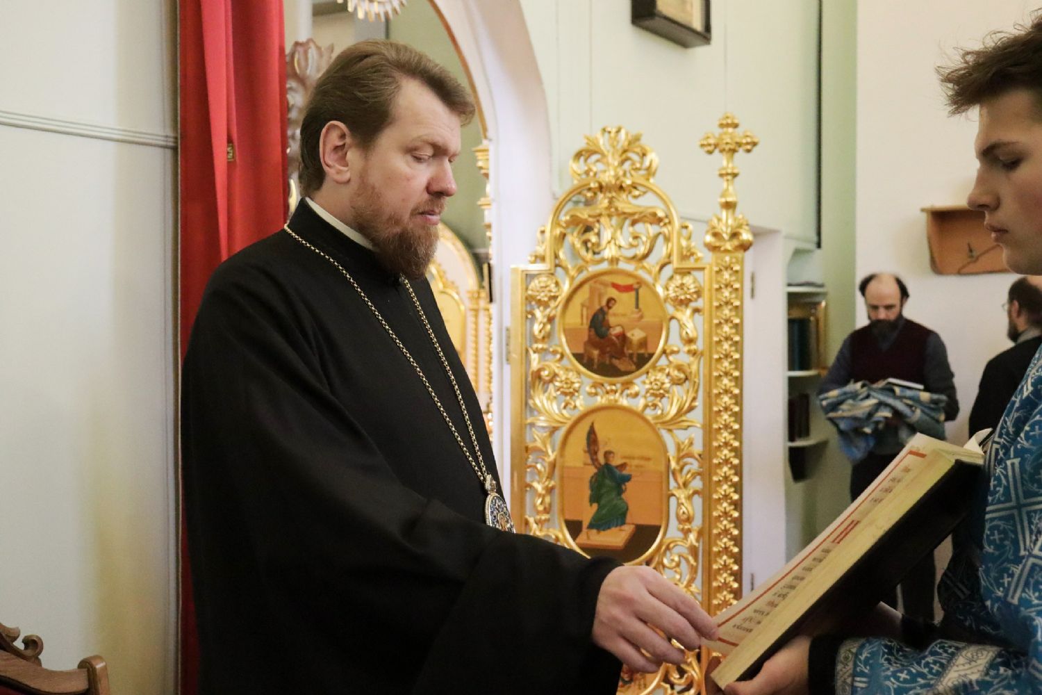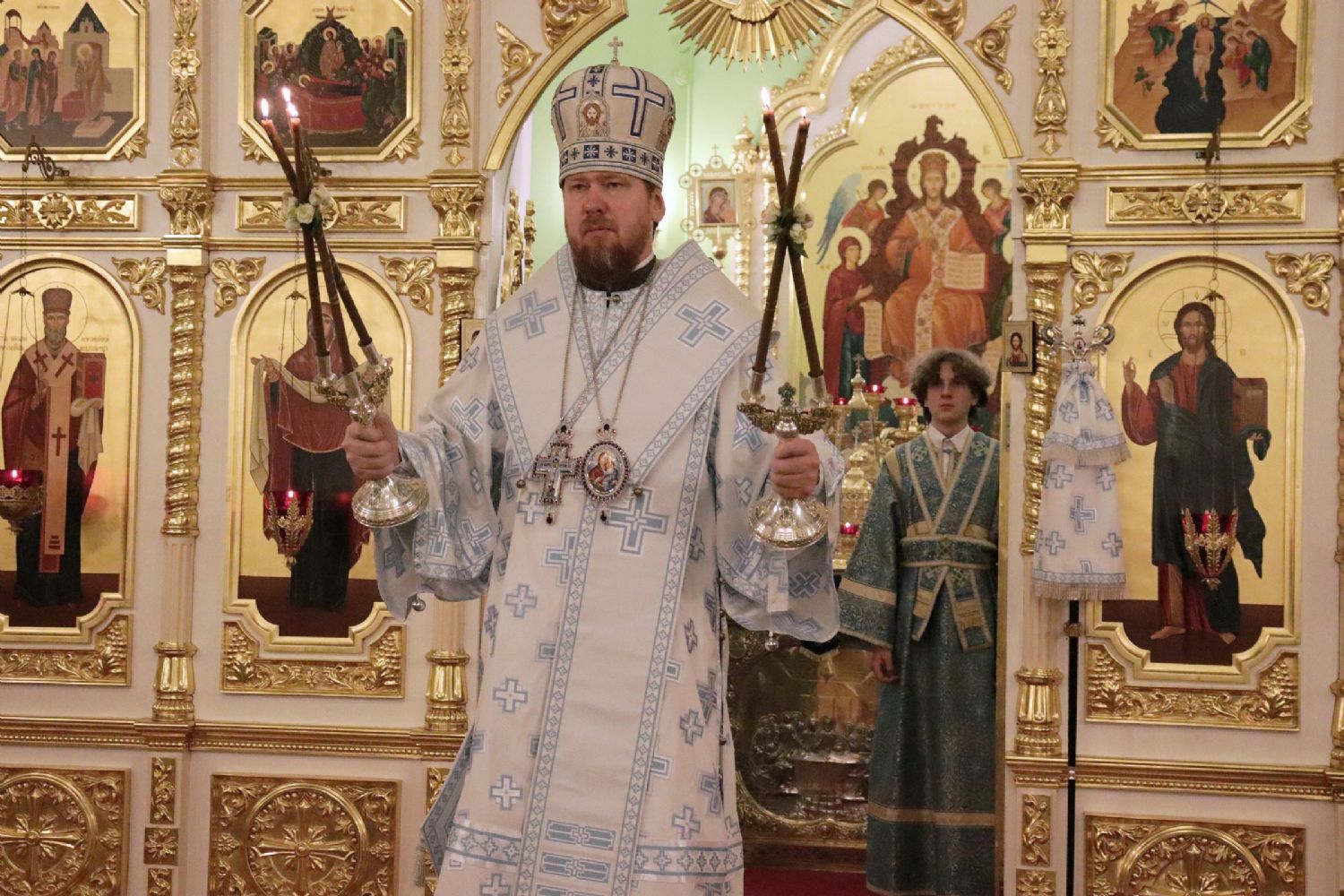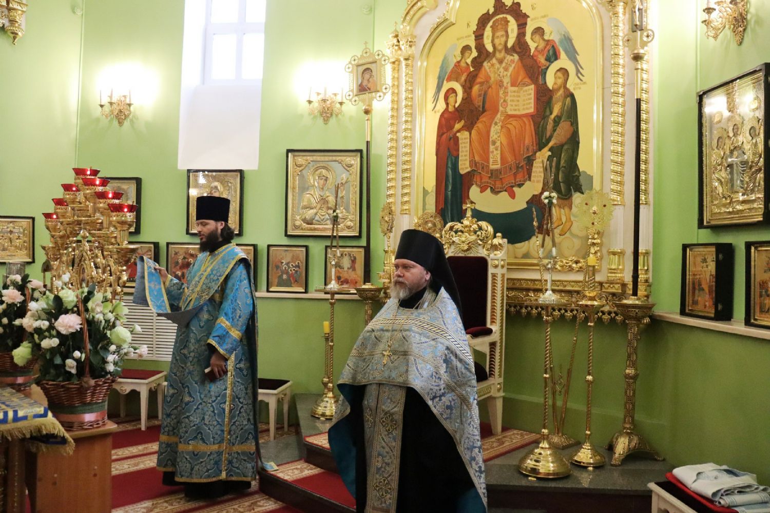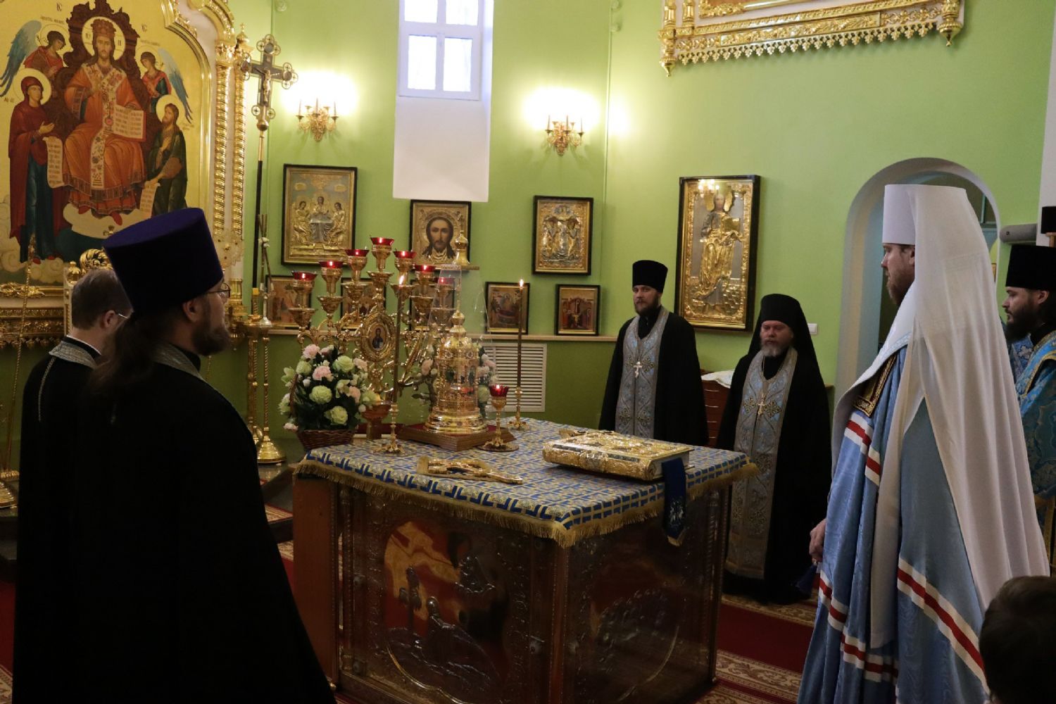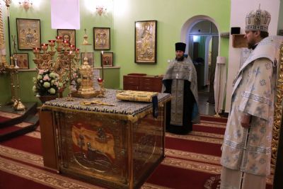 Его Высокопреосвященству сослужили: игумен Антоний (Каменчук); иерей Максим Точуков; иерей Виктор Архипов; ответственный за организацию архиерейских богослужений иерей Дионисий Ищенко.