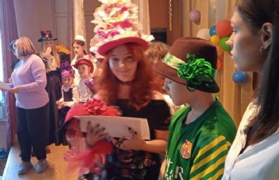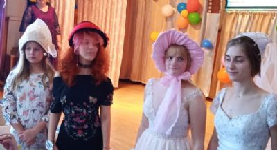 А 24 ноября воспитанница воскресной школы Елизавета Баранова приняла участие в конкурсе "Мода из комода", проведённом там же, в КШИ первого вида для слабослышащих детей: юные дизайнеры создавали шляпы разных эпох и стилей и "Сумку мечты". Лиза сделала прекрасные работы и получила 2-е место за "Сумку мечты".