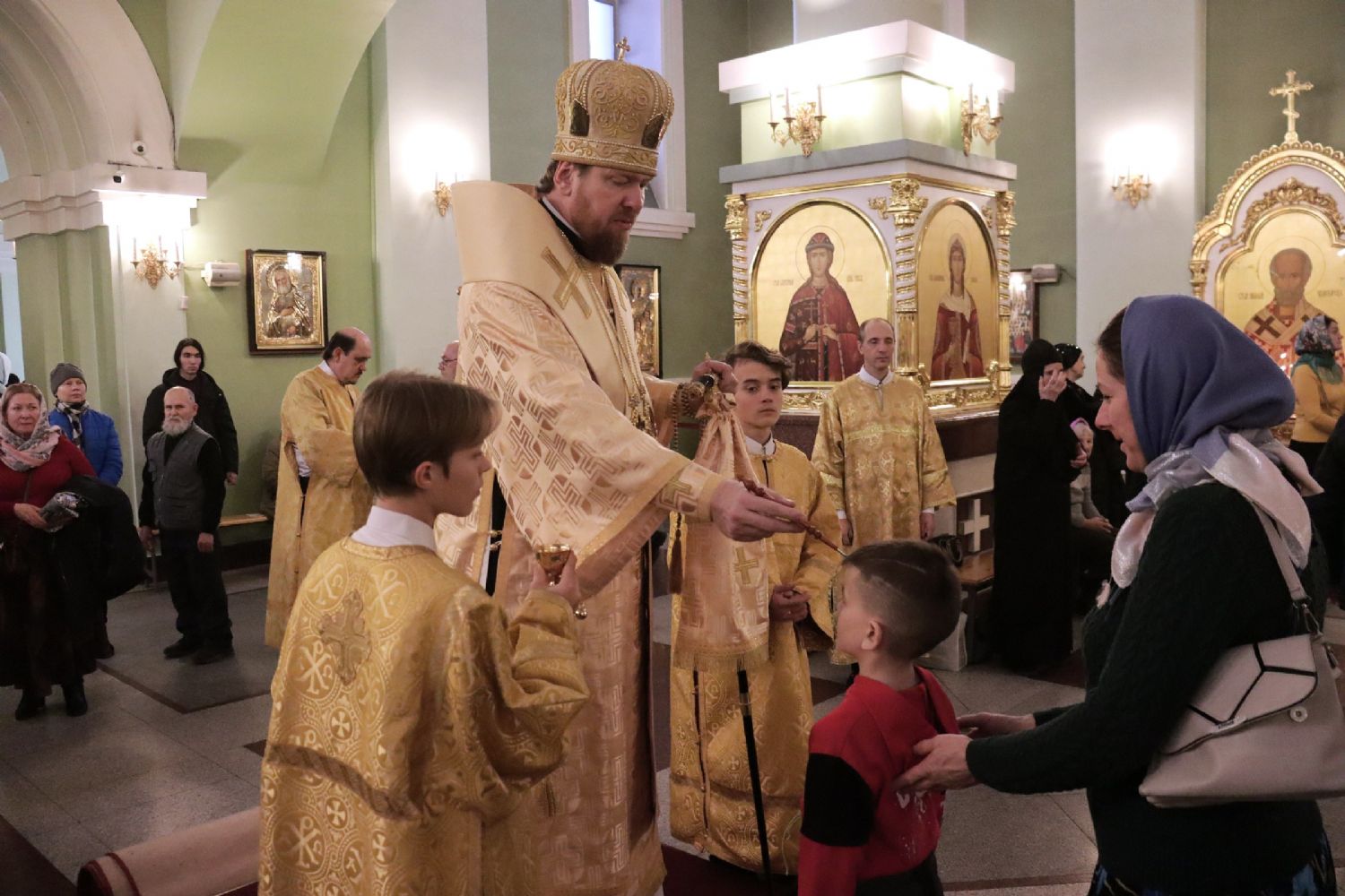 После чтения Святого Евангелия владыка Владимир совершил помазание верующих освященным елеем.