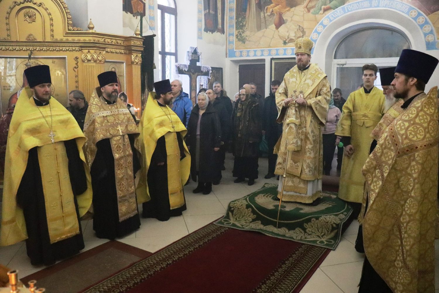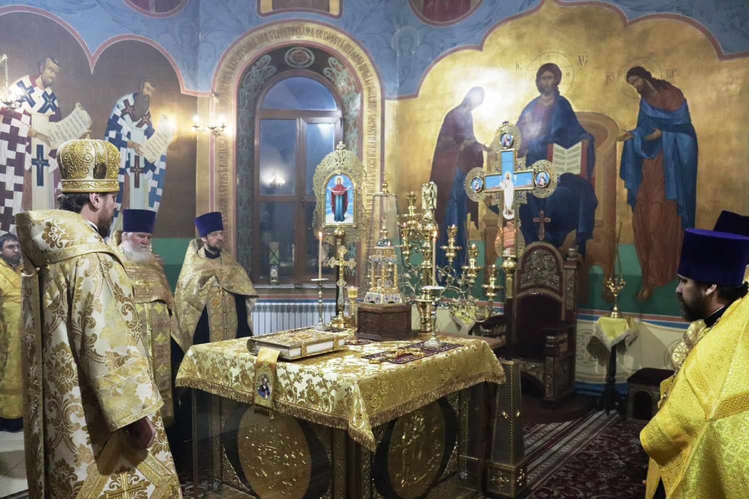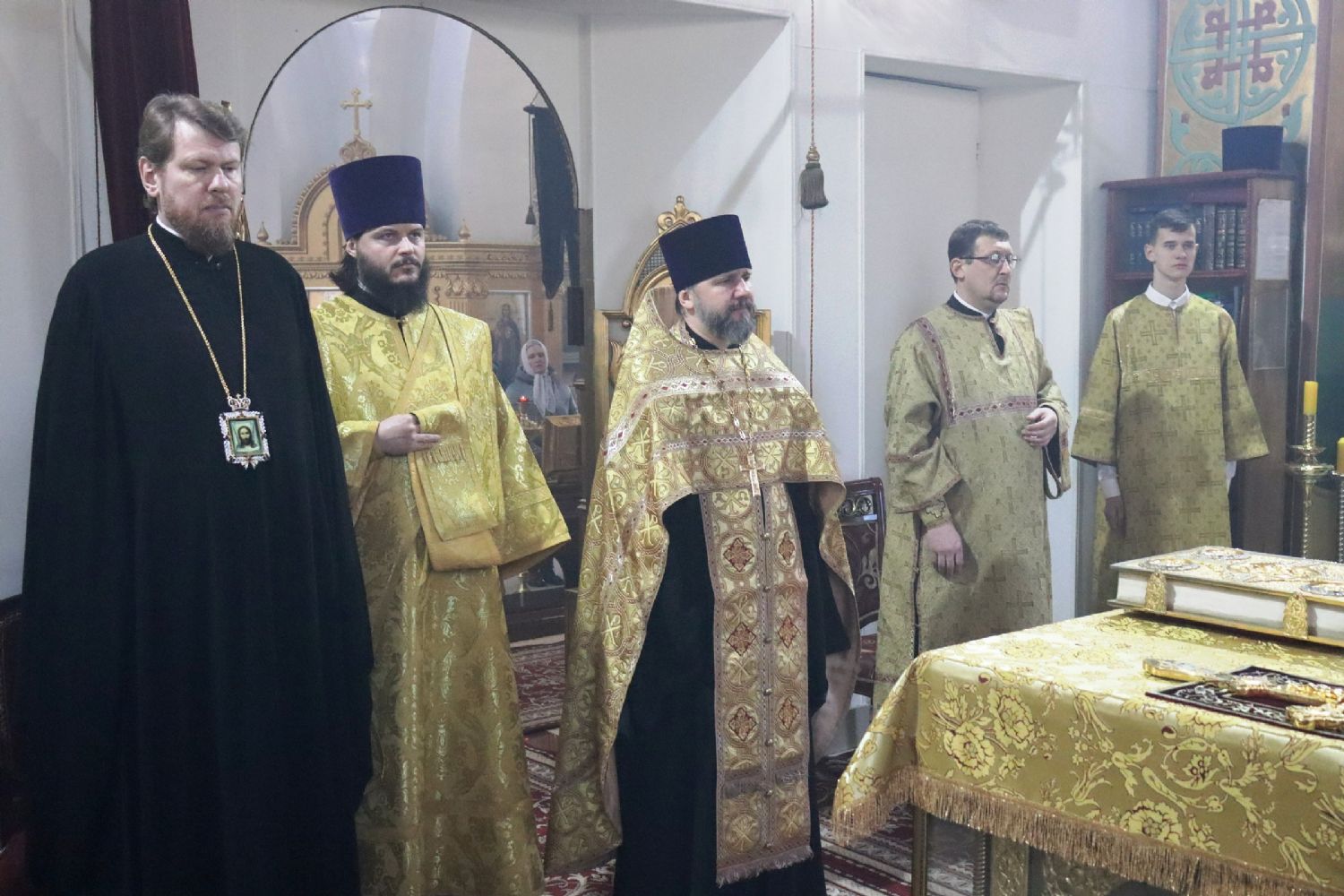 Его Высокопреосвященству сослужили: благочинный Уссурийского благочиния, настоятель Никольского храма г. Уссурийска протоиерей Андрей Машанов; настоятель храма святого преподобного Серафима Саровского протоиерей Григорий Цуркан; настоятель храма Покрова Божией Матери протоиерей Сергий Якутов; иерей Роман Бурдинский; ответственный за организацию архиерейских богослужений иерей Дионисий Ищенко.