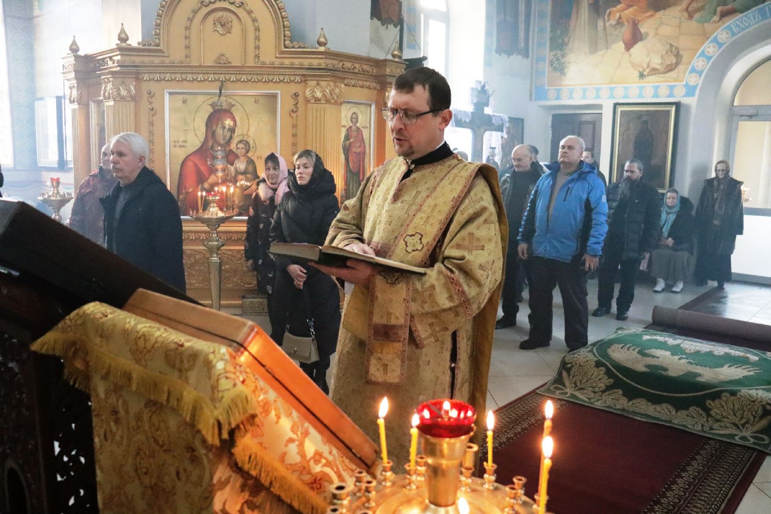 Богослужебные песнопения исполнил хор Покровского храма под управлением регента Александра Уймина.