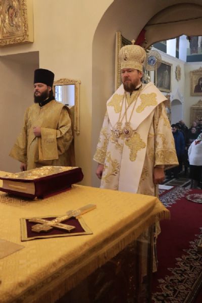 Его Высокопреосвященству сослужили: благочинный I Владивостокского благочиния Владивостокской епархии, исполняющий обязанности благочинного II Владивостокского благочиния, настоятель храма святителя Спиридона Тримифунтского протоиерей Сергий Шуталев; ключарь собора протоиерей Александр Талько; благочинный собора игумен Алексий (Несмеев); ответственный за организацию архиерейских богослужений иерей Дионисий Ищенко; иерей Сергий Зверев; заместитель благочинного I Владивостокского благочиния иерей Михаил Тутаев.