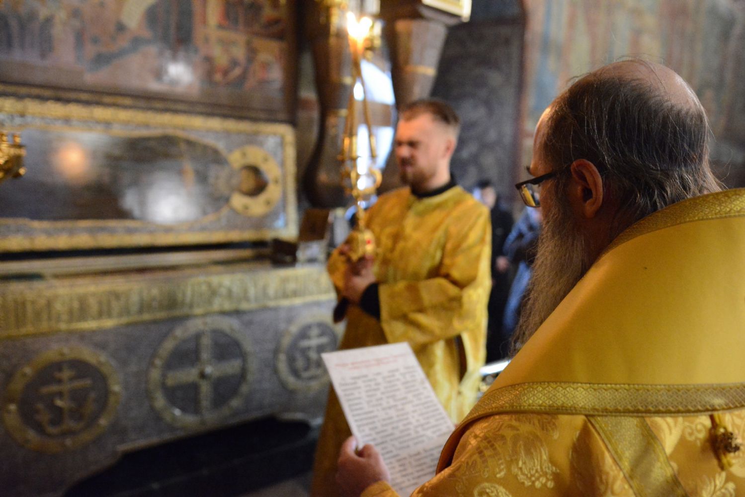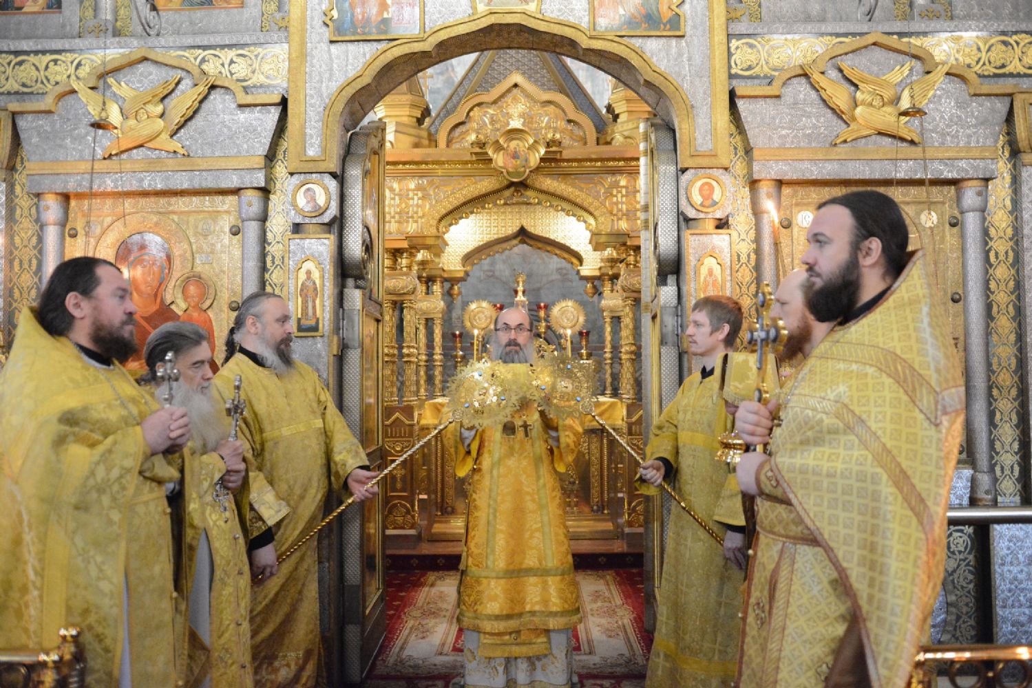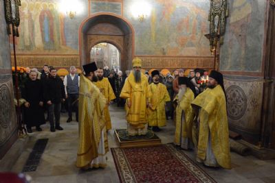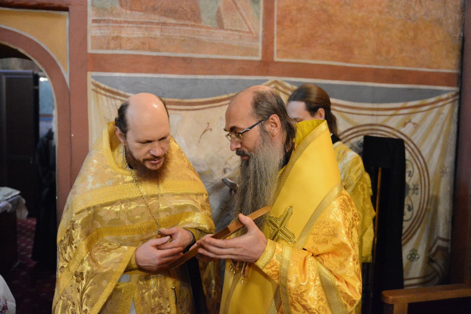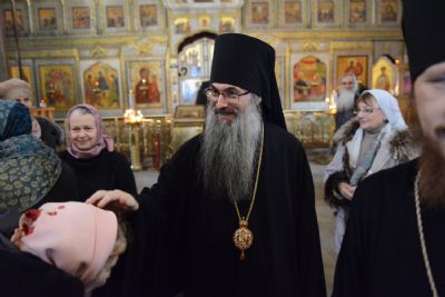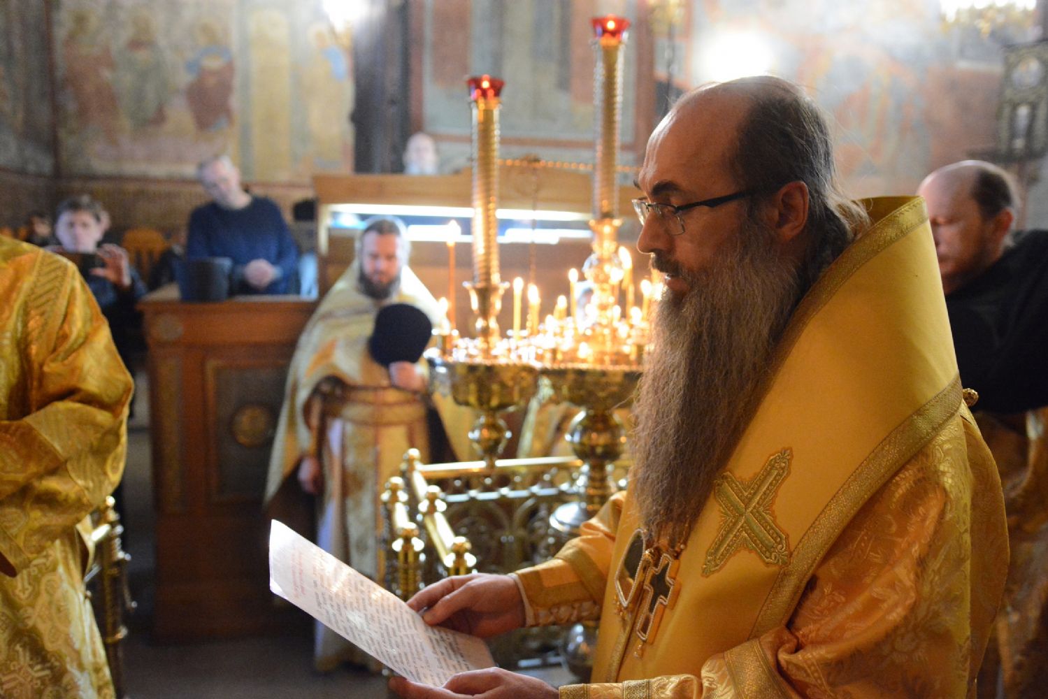 За богослужением владыке сослужили и. о. наместника монастыря иеромонах Пафнутий и братия обители в священном сане.