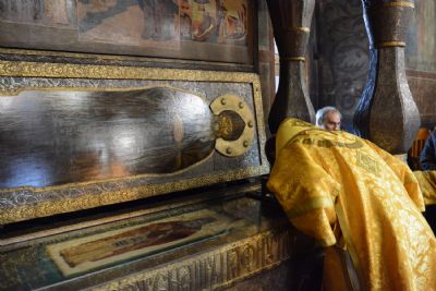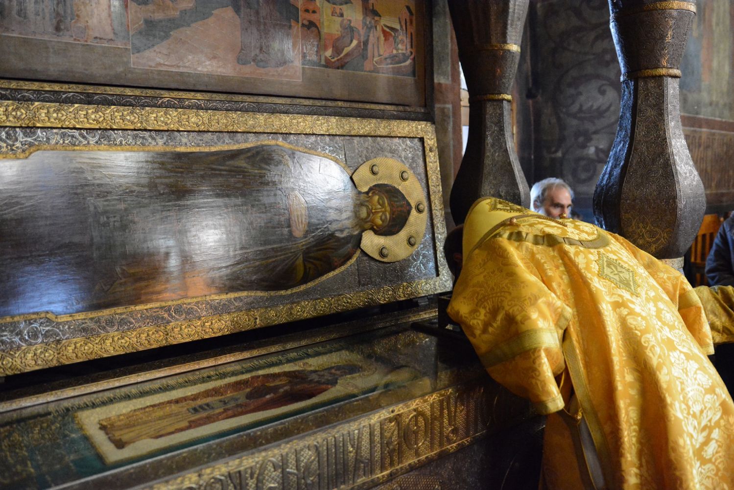 По завершении служения владыка Иннокентий совершил славление и прочитал молитву перед ракой с мощами прп. Пафнутия Боровского.