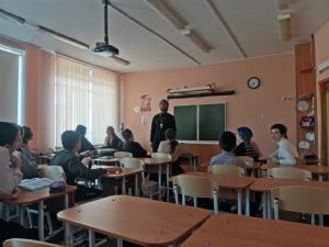 Так же в рамках проекта «Духовно-нравственное воспитание в молодёжной и подростковой среде» Андрей Владимирович Поповкин, кандидат философских наук, заведующий кафедрой философии Института истории, археологии и этнографии ДВО РАН провёл несколько бесед с учениками старших классов школы № 25 г. Владивостока. «Духовный смысл брака (или почему человек не кролик)» - так называлась одна из бесед. Андрей Владимирович обратил внимание школьников на то, как христианство понимает смысл любви. Тема ещё одной беседы была необычной, но интересной для подростков: «Почему (и какие) нам нужны духовные ценности для счастья?». Получилась довольно острая дискуссия. Ребята пытались найти ответы на вопросы: «Достаточно ли удовольствий для счастья?», «Жить нужно главным. Что главное в человеке?». Также поговорили о природе человека, о том, что дружба и любовь – это реализация человеческой соборной природы